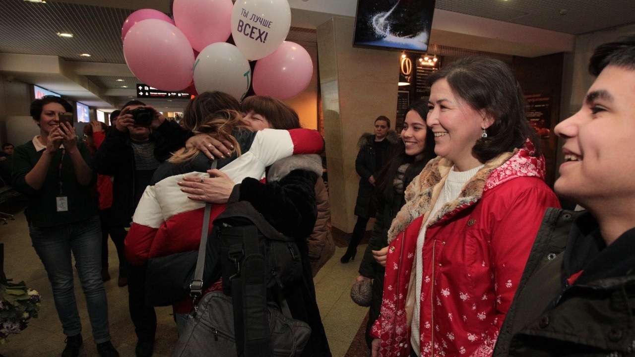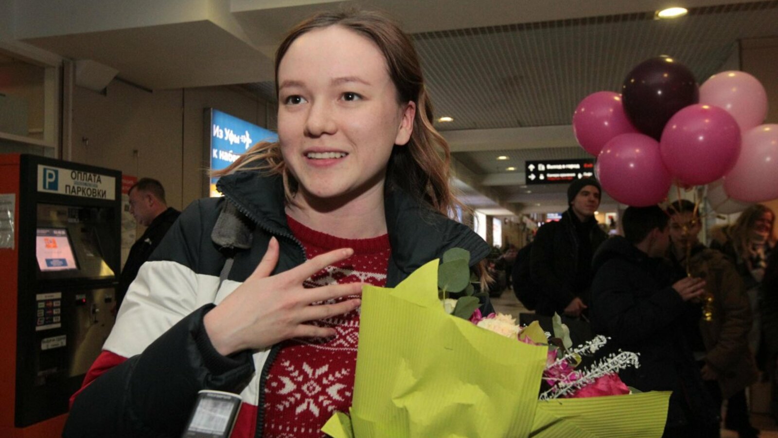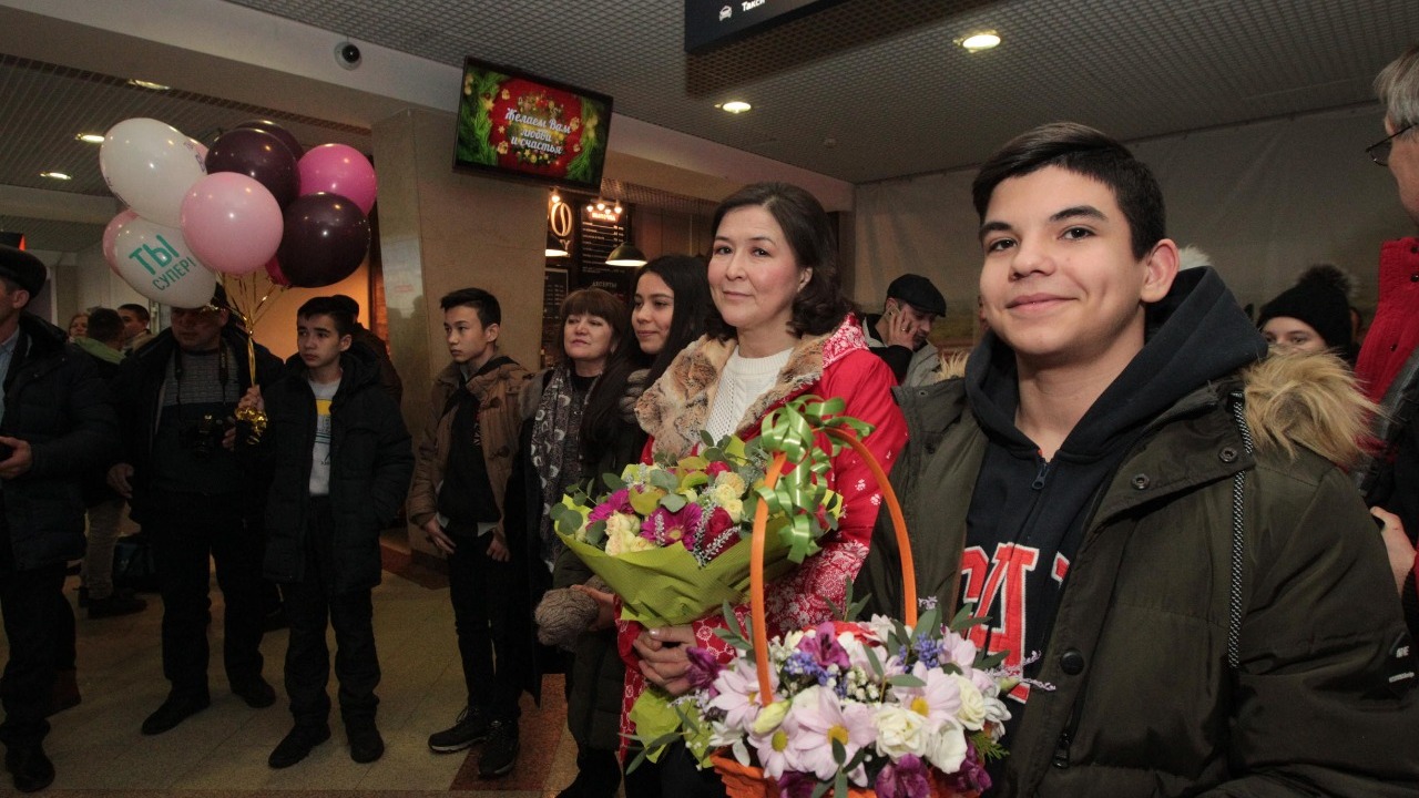 УФА, 3 янв 2019. /ИА «Башинформ», Лейла Аралбаева/.Финалистка седьмого сезона проекта Первого канала «Голос» Рушана Валиева прилетела в Уфу. Самолет из Москвы приземлился в половине четвертого утра с небольшим опозданием, и в аэропорту «Уфа» собралась толпа встречающих любимую певицу. Родные, друзья, фанаты, представители СМИ ждали Рушану с цветами, шарами, и юная артистка, несмотря на усталость, устремилась к ним с распростертыми объятиями.