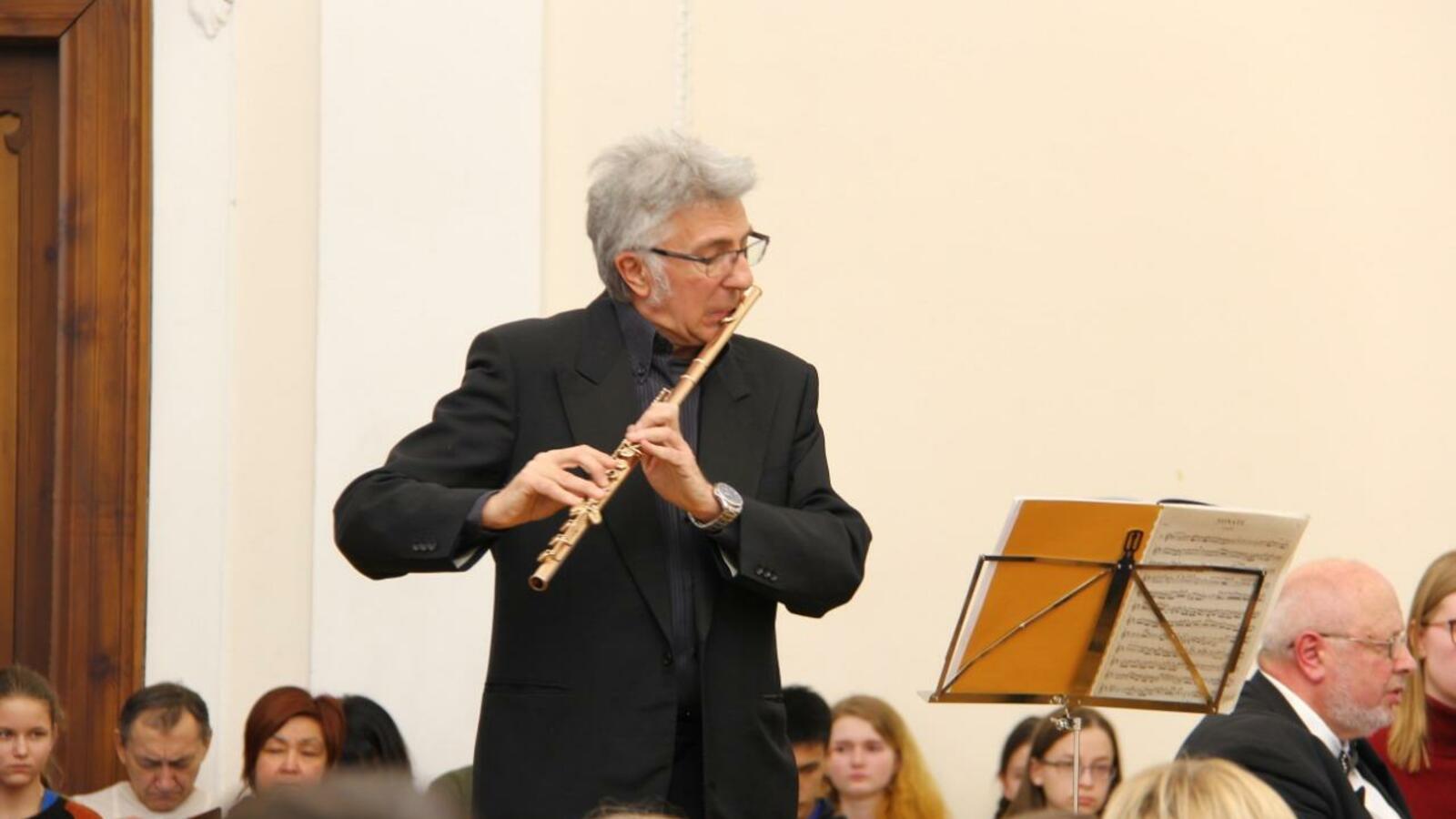 УФА, 18 мар 2019. /ИА «Башинформ»/. В концертном зале имени Федора Шаляпина Уфимского государственного института искусств имени Загира Исмагилова состоялся концерт в рамках музыкально-образовательного проекта «Мастера мирового исполнительского искусства – талантам России». Благотворительный концерт организован при поддержке ПАО «Газпром», на нем выступили один из ведущих европейских флейтистов Клаудио Монтафиа (Италия) и участники знаменитого трио имени Рахманинова – Виктор Ямпольский и Наталья Савинова. Они исполнили произведения Баха, Гайдна, Вебера.