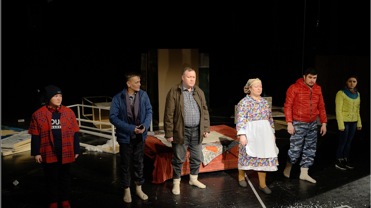 Спектакль Салаватского театра поставлен как камерный, зритель чувствует дыхание актеров, ощущает себя частью сценического пространства, рассказала завлит театра Дина Баширова. Четыре героя - двое братьев-башкир - Булат (Мирас Юмагузин) и Уразбай (Радмир Давлетбаев) и двое русских - сын адвоката Сергеев (Лиана Нигматуллина) и девушка Таня (Гульчачак Зарипова) - в центре этой истории. За действом со стороны наблюдают Мать (народная артистка РБ Гульчачак Шарипова) и Отец (народный артист РБ Риза Магадеев). Всех этих людей объединяет отсутствие настоящей семьи, заботы и контакта с близкими. Братья находятся на границе меж двух миров, русского и исконно башкирского. Долгое время живя в Москве, они так и не могут обрусеть окончательно. Возвращаться в Башкортостан желания нет, оборваны нити, прежде соединявшие их с малой родиной...