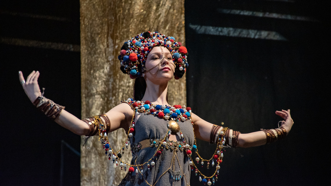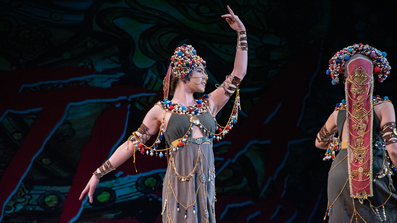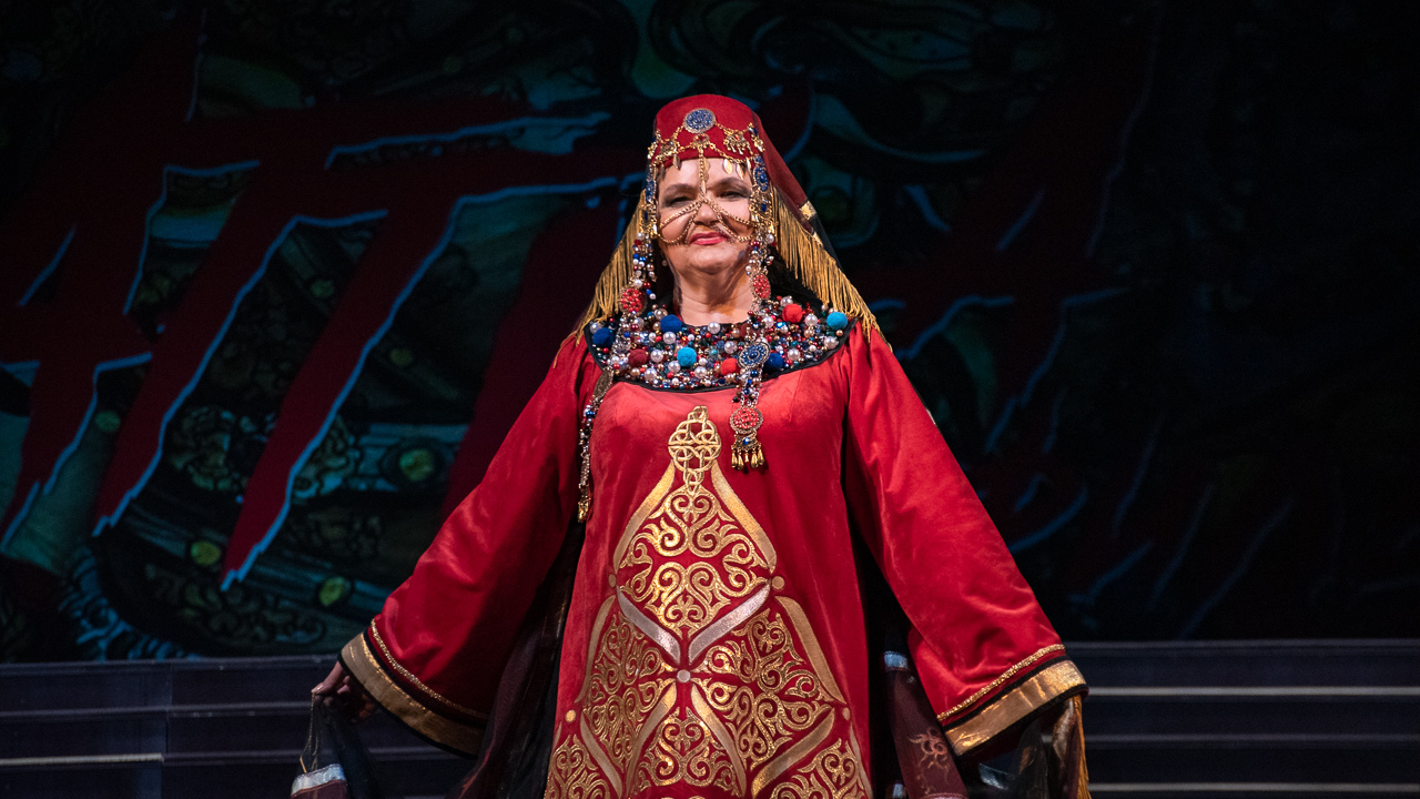 «Костюмы невольниц - это моя дань башкирской земле: если вы посмотрите на головной убор - это классический кашмау, просто немного видоизмененный. Хотя девушки с ним легко обращаются, на самом деле он весит 5 кг», - сказал художник.