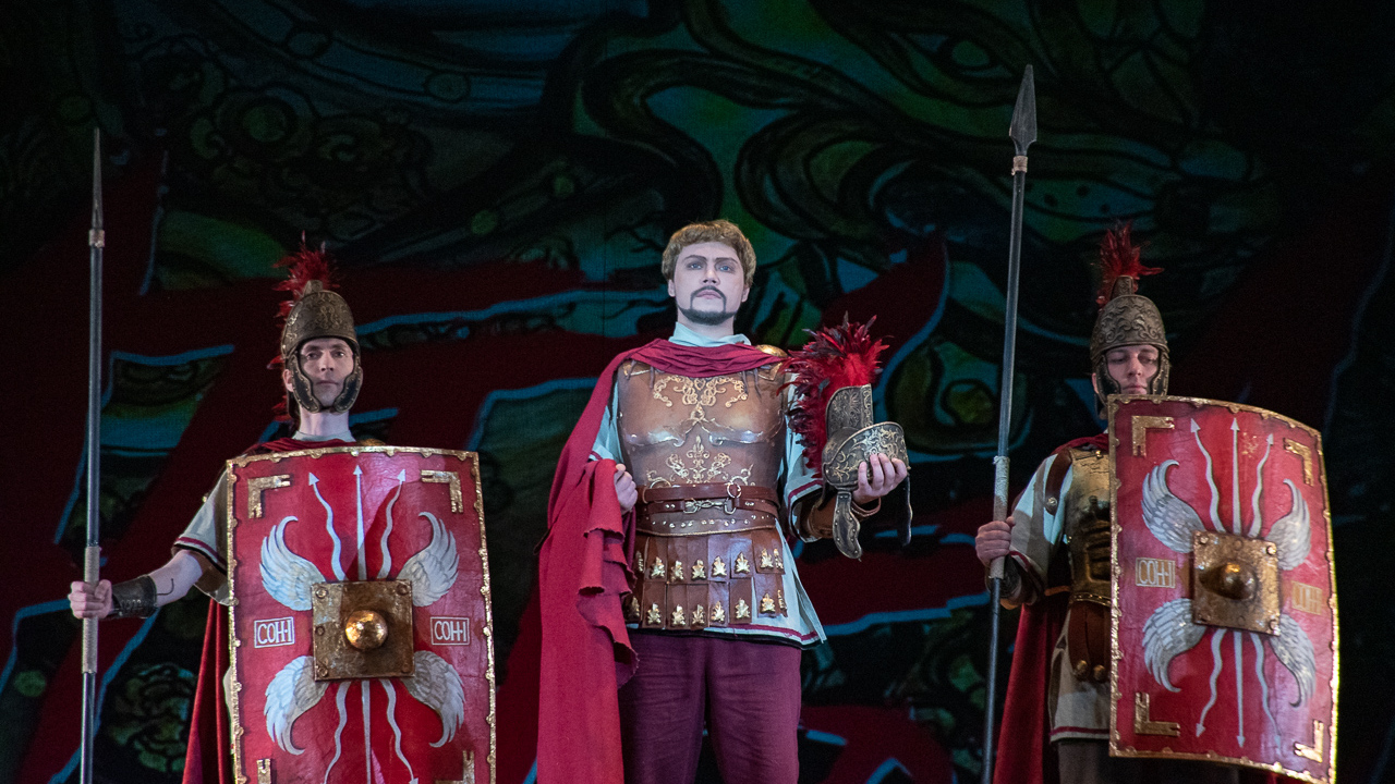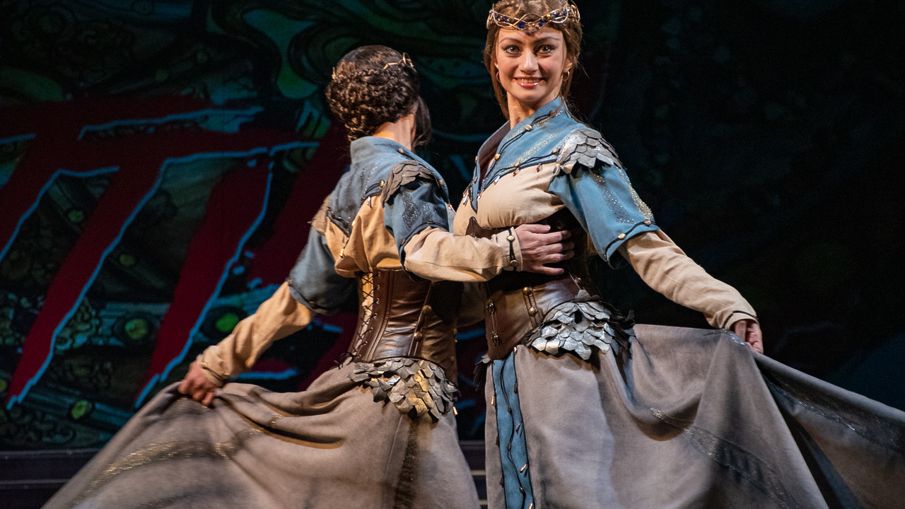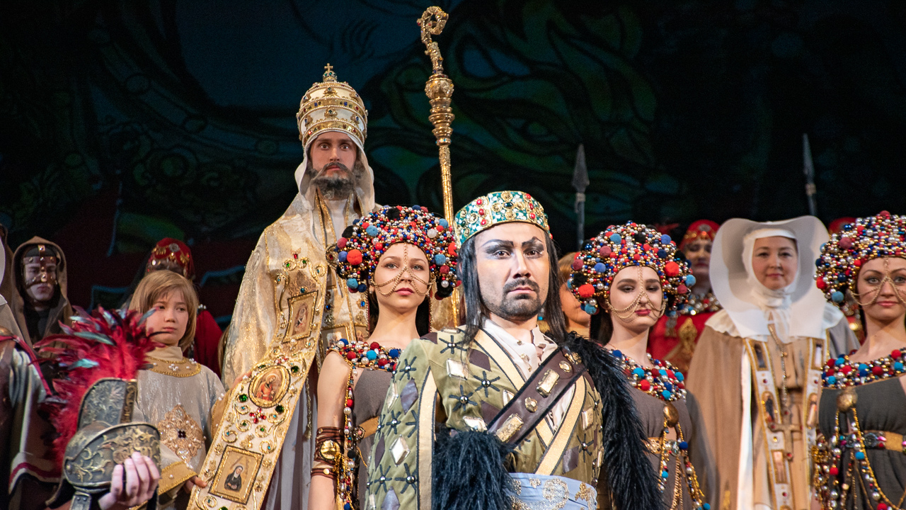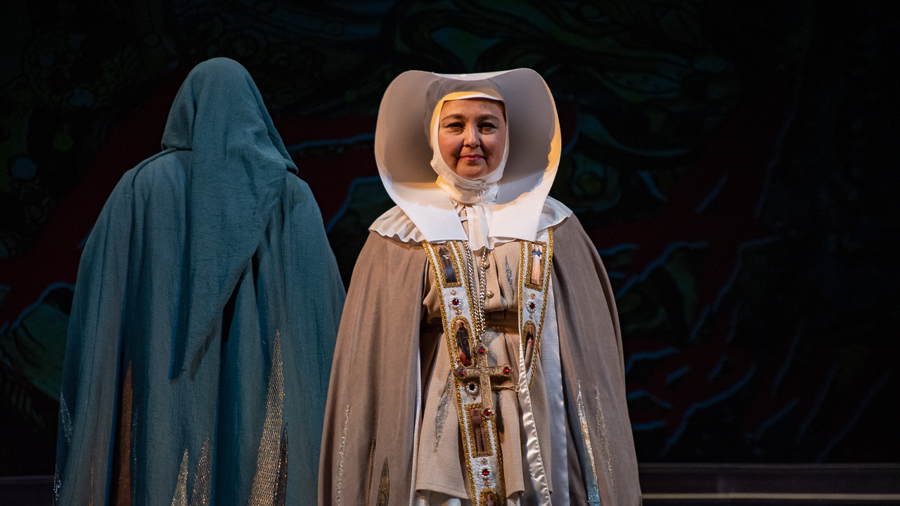 «Костюмы невольниц - это моя дань башкирской земле: если вы посмотрите на головной убор - это классический кашмау, просто немного видоизмененный. Хотя девушки с ним легко обращаются, на самом деле он весит 5 кг», - сказал художник.