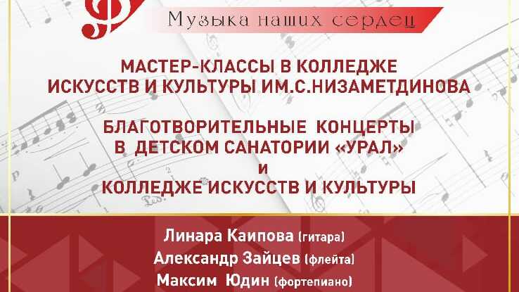 В Белорецке мастер-классы и концерт состоятся в Детской музыкальной школе № 1, также участники проекта выступят в социальном приюте. В Учалах юные таланты будут играть в детском санатории «Урал», еще один благотворительный концерт и мастер-классы пройдут в Колледже искусств и культуры имени Салавата Низаметдинова. В поселке Инзер мастер-класс и концерт запланированы в Детской школе искусств.
