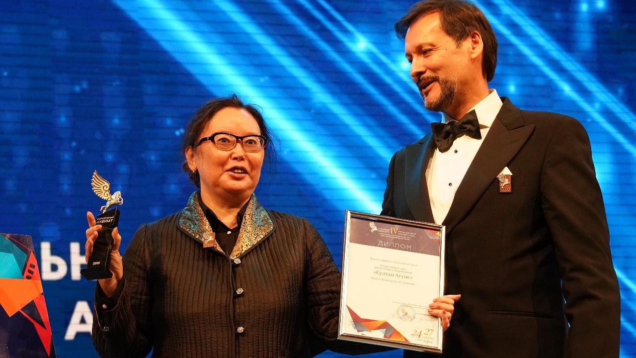 УФА, 27 авг 2019. /ИА «Башинформ», Лейла Аралбаева/.В Уфе в День российского кино завершился IV Международный кинофестиваль «Серебряный Акбузат». На церемонии награждения, которая прошла в Конгресс-холле, назвали имя обладателя Гран-при. Статуэтку мифического крылатого коня и сертификат на миллион рублей получила режиссер Любовь Борисова за свой дебютный фильм «Надо мною солнце не садится» (Саха-Якутия, Россия). Главный приз вручил председатель жюри, артист театра и кино, телеведущий, народный артист РСФСР Сергей Шакуров.