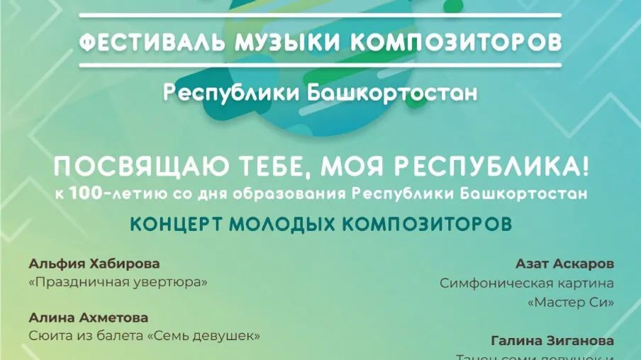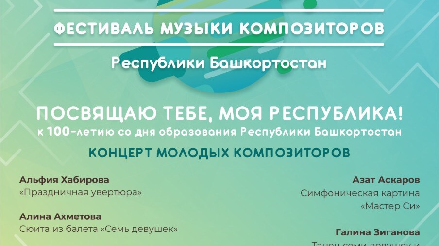 Поздравить Республику Башкортостан со 100-летием приедут композиторы из Республики Татарстан. В рамках фестиваля состоится камерный концерт музыки татарских композиторов. Организаторы надеются, что фестиваль станет традиционным и позволит жителям республики услышать известные и новые сочинения, как выдающихся башкирских авторов, так и подающих большие надежды молодых композиторов.