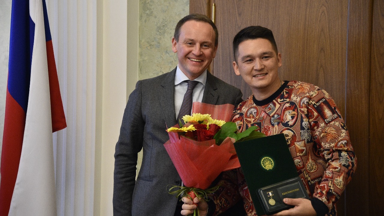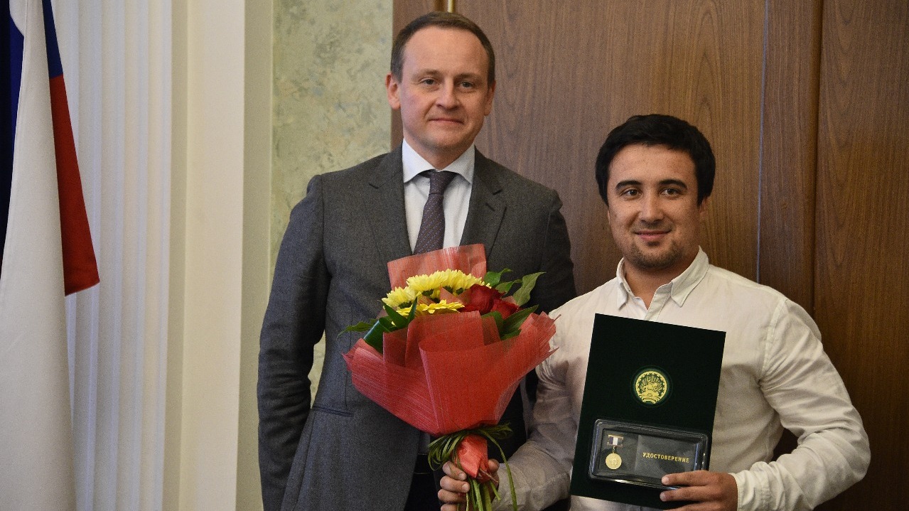Актер Национального молодежного театра Ильгиз Тагиров рассказал журналистам, что сегодня для него волнительный день и он счастлив вместе со своими коллегами получить столь высокую награду.