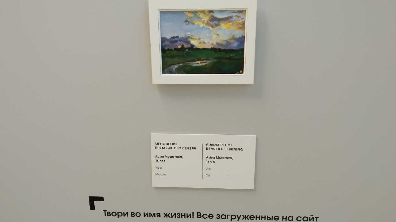 «Практически каждое лето мы с сестрами проводим свои каникулы в деревне Калу-Айры у бабушки с дедушкой. Там очень красивая природа – горы, лес, речка. Однажды я наблюдала за закатом и заметила, как знакомый мне с детства пейзаж заиграл новыми яркими красками. Именно этот момент я и попыталась изобразить в своей работе. Вообще, пейзаж - мой любимый жанр, а с творчеством Поленова я знакома еще со школы. Даже не думала, что когда-нибудь увижу их в оригинале», - рассказала она корреспонденту агентства «Башинформ».Поучаствовать в художественном конкурсе проекта «Поколение М» именно с этой картиной Асие посоветовала мама. «Я, конечно, сомневалась, но в душе всегда была надежда, что могу победить», - признается девушка.