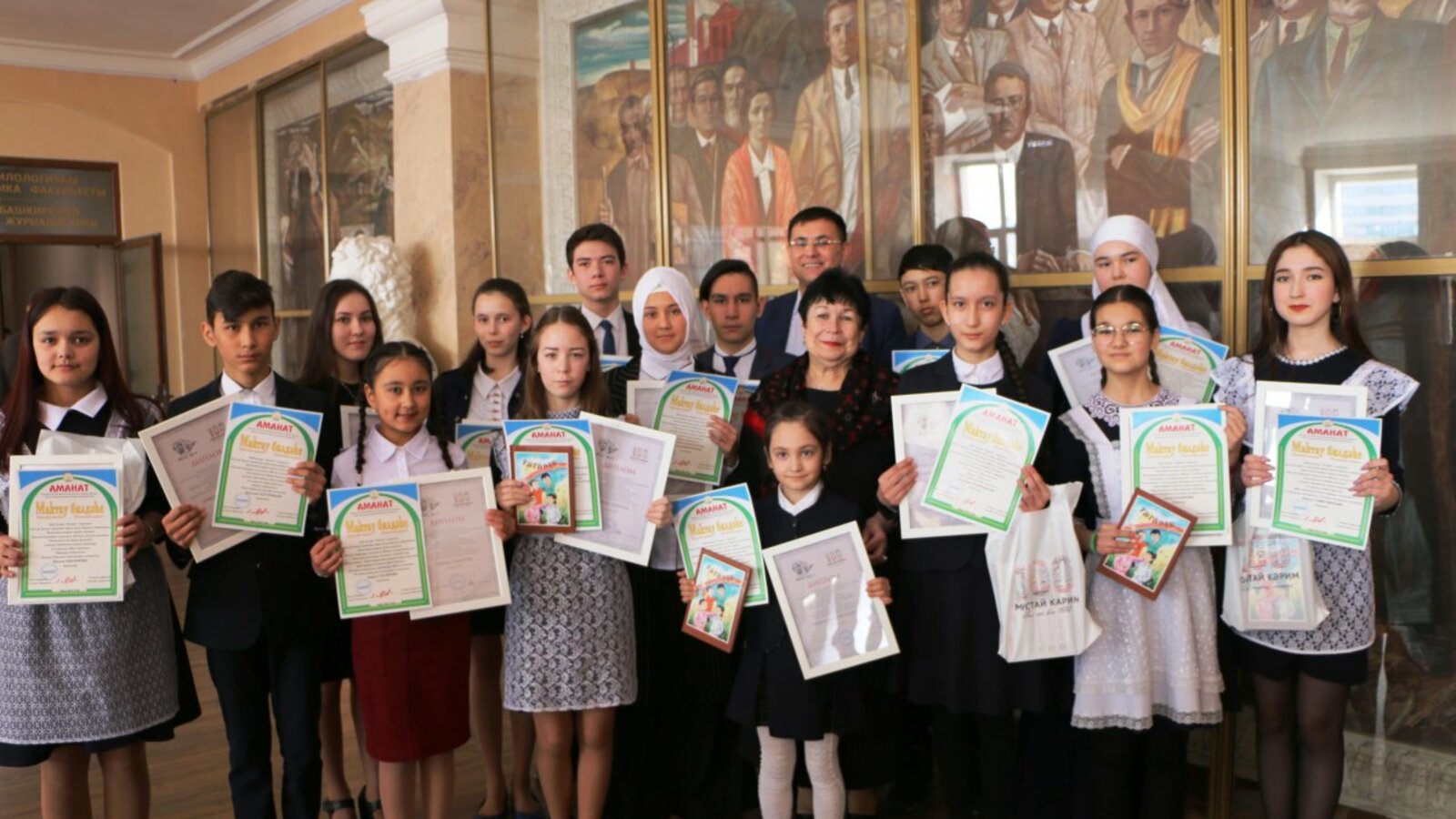 В Уфе, в Творческой мастерской имени Мустая Карима - центре по изучению башкирского языка и литературы - состоялось награждение победителей литературного конкурса, посвященного 100-летию народного поэта Башкортостана Мустая Карима. Республиканский конкурс проводился среди учащихся школ Башкортостана в двух номинациях на самые лучшие поэтические произведения (под названием «Башкортостан начинается с нас») и на самые лучшие прозаические произведения (под названием «Творческий азарт»).