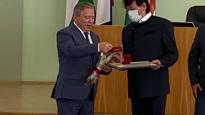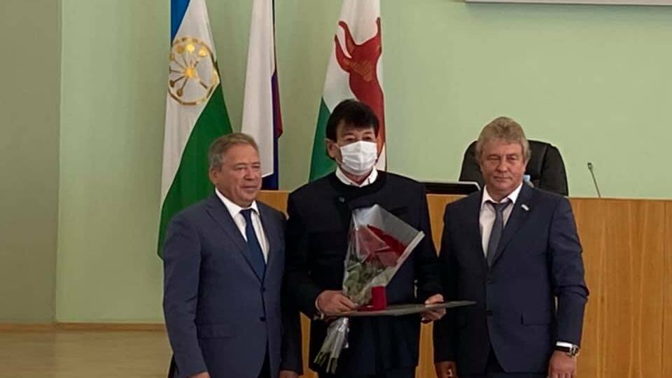 Вручение состоялось в торжественной обстановке. Удостоверение вручил председатель Городского Совета администрации г. Уфы Валерий Трофимов и глава администрации города Ульфат Мустафин в присутствии депутатов горсовета.