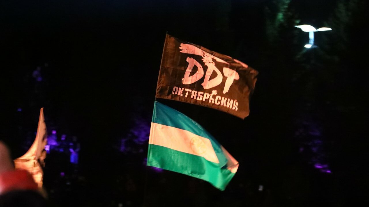 «Когда я приезжаю в Уфу... Я вообще человек такой - мне не свойственно ностальгировать. Но сегодня вспоминаю - идешь по улице Ленина, Социалистической, Карла Маркса, чего только не происходило, на каждом углу, друзья. Есть что вспомнить. Как-то по улице Ленина брели четыре совершенно никому не известных человека - я, Гена Родин, Асанбаев Рустик, Володя Сигачев, у нас денег не было, ничего, кроме мечты. Мы уже сыграли тогда две-три песни. Думали: ну как-то же надо назваться, ребята, мы же группа! Были разные названия - Блюминг, Мартен, Химпром. А я предложил: «А давайте назовемся ДДТ!». И Рустэм Асанбаев говорит: «Представляешь, выходим лет через 20 на сцену и зал кричит: ДэДэТэ! ДэДэТэ!».Зрители в Уфимском амфитеатре подхватили клич и в течение всего концерта подпевали любимым песням. Одну из них - «Белая река» Юрий Юлианович посвятил своим уфимским друзьям поименно: