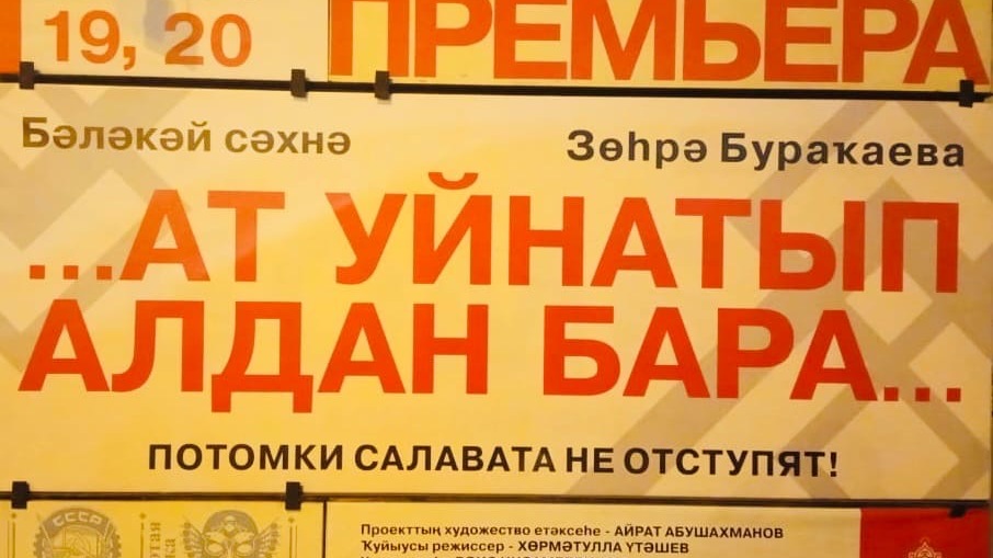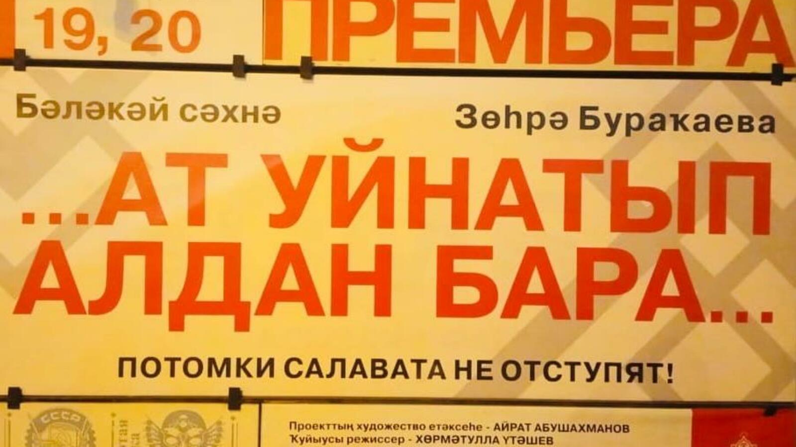 Премьера спектакля «Ат уйнатып алдан бара» - «Потомки Салавата не отступят!» состоится 19 и 20 ноября в Малом зале театра (Большой зал до сих пор находится на реконструкции).