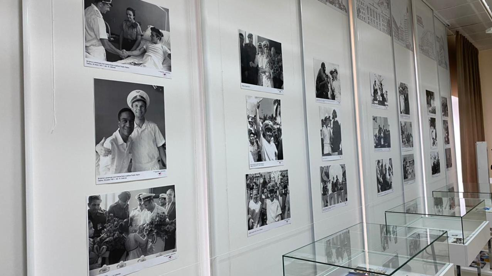 На выставке представлены уникальные фотографии встреч Юрия Гагарина с лидерами Кубинской революции Фиделем Кастро, Эрнесто Че Геварой, президентом Кубы Освальдо Дортикосом Торрадо и с простыми кубинскими гражданами.