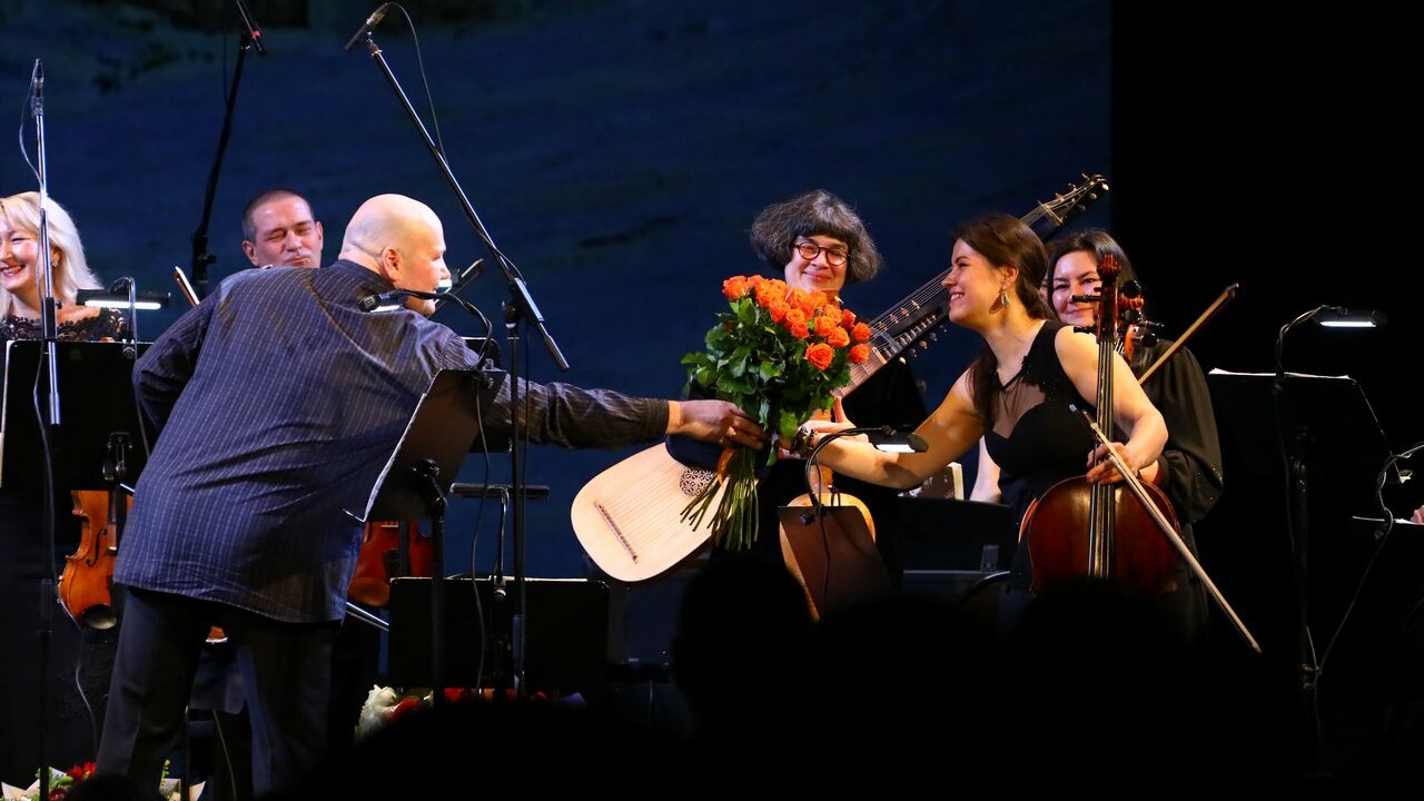 Музыканты исполнили не только «Времена года» Вивальди, но и две композиции «Зима» и «Лето» из «Времен года в Буэнос-Айресе» Астора Пьяццоллы в транскрипции Валерия Скобелкина. Инструментальные концерты, которые нечасто исполняются в Башопере, - один из любимых публикой жанров, и в этот вечер собрался полный зал. Многочисленные букеты именинник с удовольствием раздал музыкантам камерного оркестра.