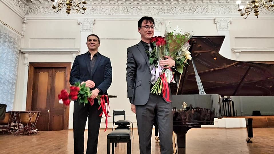 Во втором отделении слушателей и самого юбиляра ожидал сюрприз - сонату С. Франка Шайхутдинов исполнил вместе с профессором Гнесинской академии, скрипачом Евгением Логиновым, специально прилетевшим на концерт и появившимся в зале только в начале второго отделения.