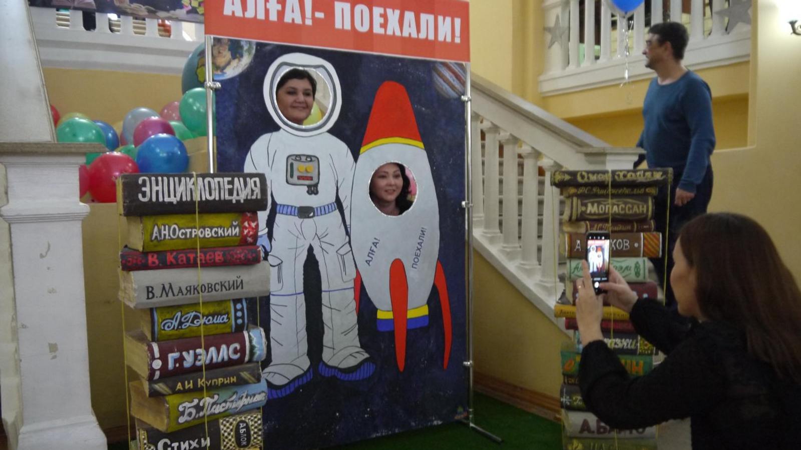 В читальном зале состоялась встреча с молодыми поэтами Уфы и республики – Открытый микрофон «Мы начинаем!». Были организованы фотозоны «Земля в иллюминаторе» и Уголок космической фотосессии «Поехали!», где гости устроили оригинальную фотосессию, представив себя в роли космонавта, «слетали» в космос на космическом корабле «Восток».