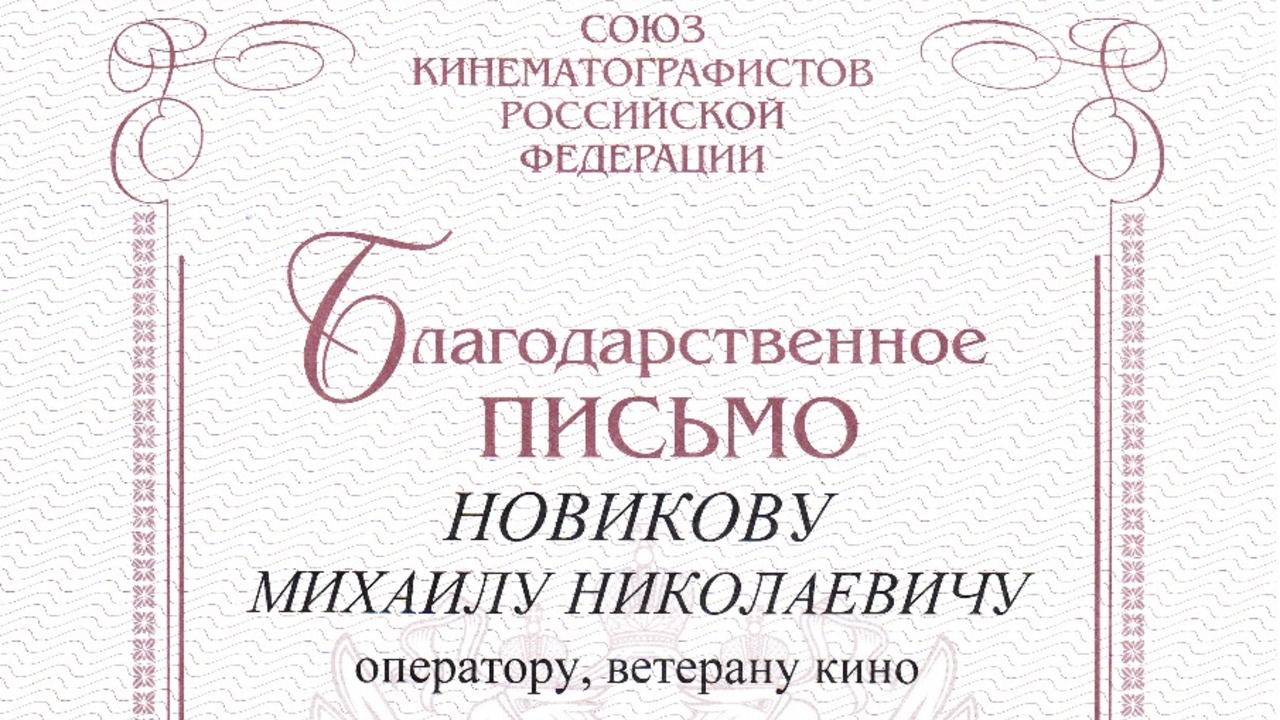 5 мая исполнилось 80 лет ветерану кино, члену Союза кинематографистов Башкортостана и России Михаилу Новикову. По случаю юбилея Михаилу Николаевичу было вручено Благодарственное письмо от имени председателя Союза кинематографистов России Никиты Михалкова. Письмо вручила председатель Союза кинематографистов Башкортостана Зухра Буракаева.