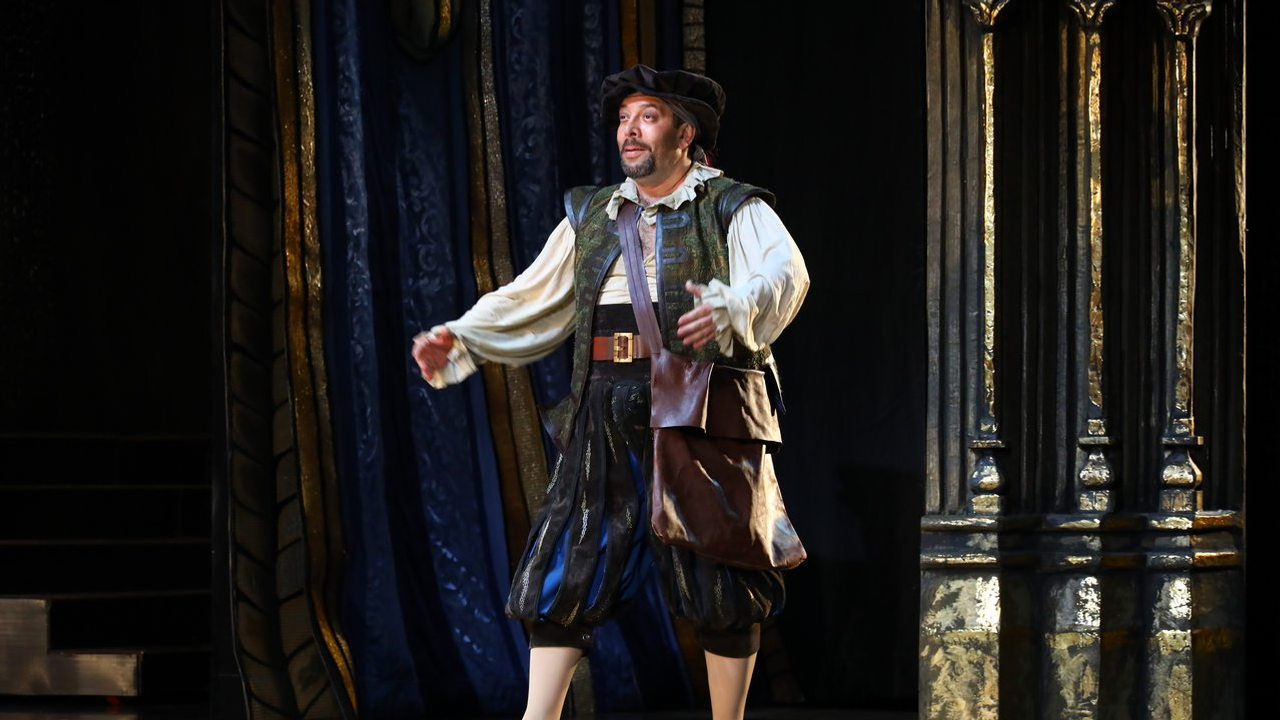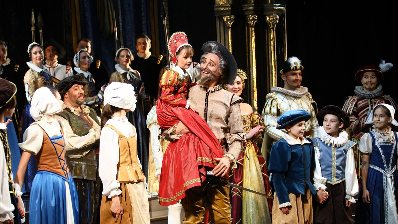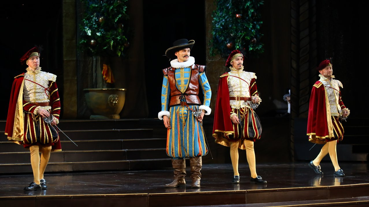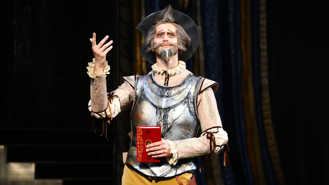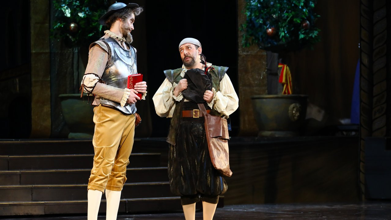 «Костюмы сделаны в стиле испанского маньеризма. Вы сможете увидеть исторический срез испанского костюма того времени от придворного костюма инфанты или маркиза до военных, гардемаринов и горожан, - прокомментировал художник. - Когда мы с Аскаром Амировичем обсуждали, каким он видит своего героя, мы решили максимально приблизить его костюм к тому, в котором пел когда-то эту партию Шаляпин. Я не могу сказать, что это точная копия, потому что тот костюм, естественно, не сохранился. Цвет мой, но всё остальное - и нижняя рубашка, и панцирь, у которого потеряна задняя часть, как у того костюма. Что касается головного убора - это тазик для бритья, который, как вы помните, наш герой нашел и сделал своим шлемом», - пояснил Иван Складчиков.