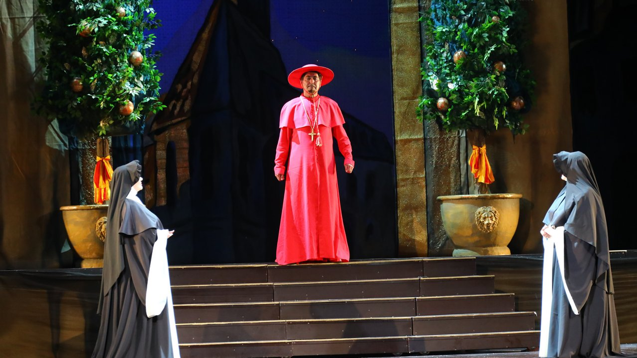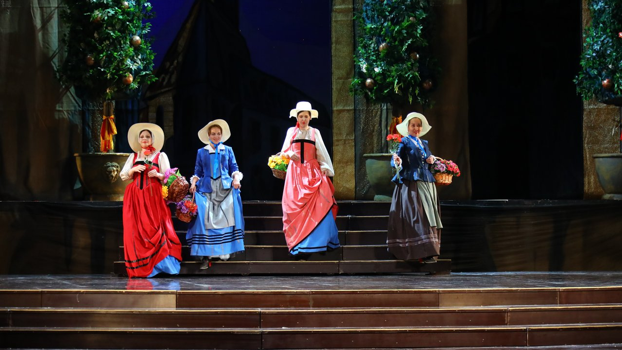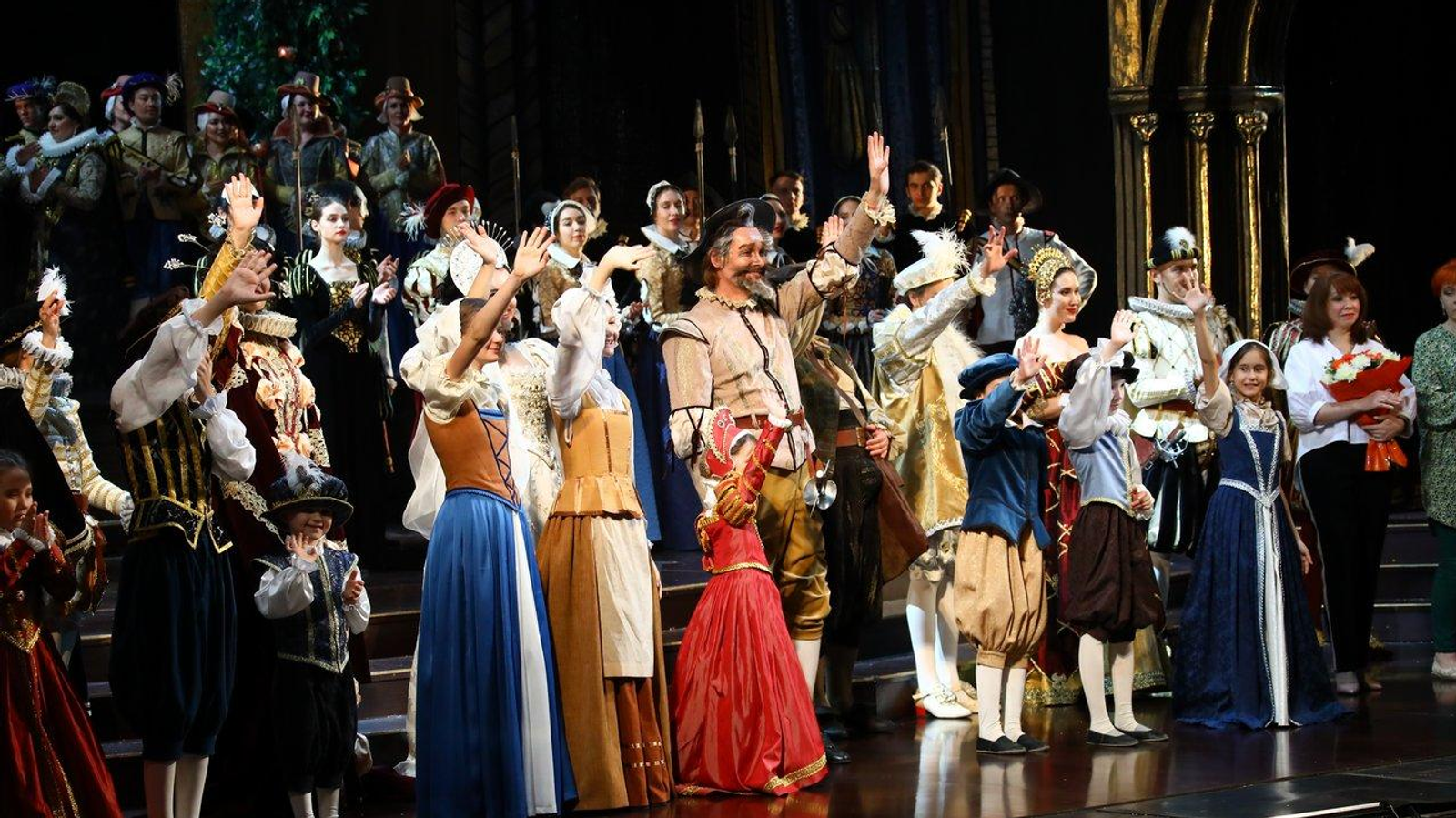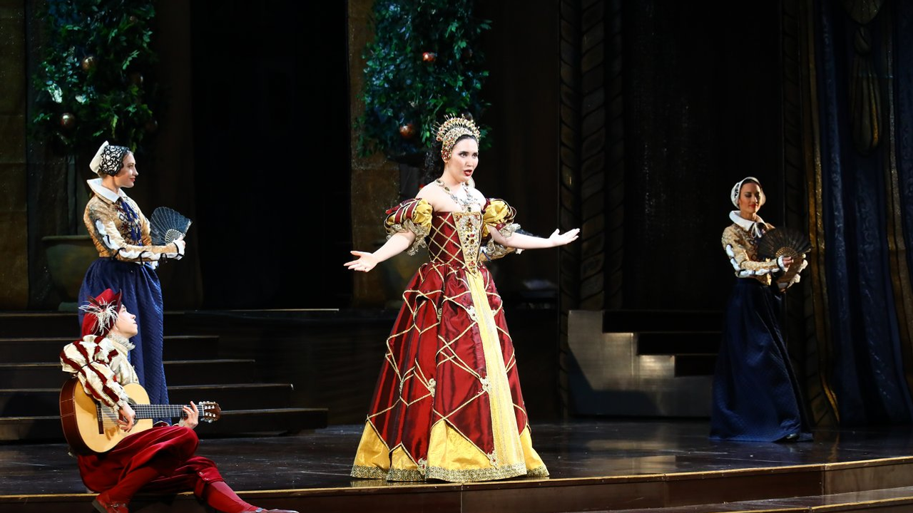 «Костюмы сделаны в стиле испанского маньеризма. Вы сможете увидеть исторический срез испанского костюма того времени от придворного костюма инфанты или маркиза до военных, гардемаринов и горожан, - прокомментировал художник. - Когда мы с Аскаром Амировичем обсуждали, каким он видит своего героя, мы решили максимально приблизить его костюм к тому, в котором пел когда-то эту партию Шаляпин. Я не могу сказать, что это точная копия, потому что тот костюм, естественно, не сохранился. Цвет мой, но всё остальное - и нижняя рубашка, и панцирь, у которого потеряна задняя часть, как у того костюма. Что касается головного убора - это тазик для бритья, который, как вы помните, наш герой нашел и сделал своим шлемом», - пояснил Иван Складчиков.