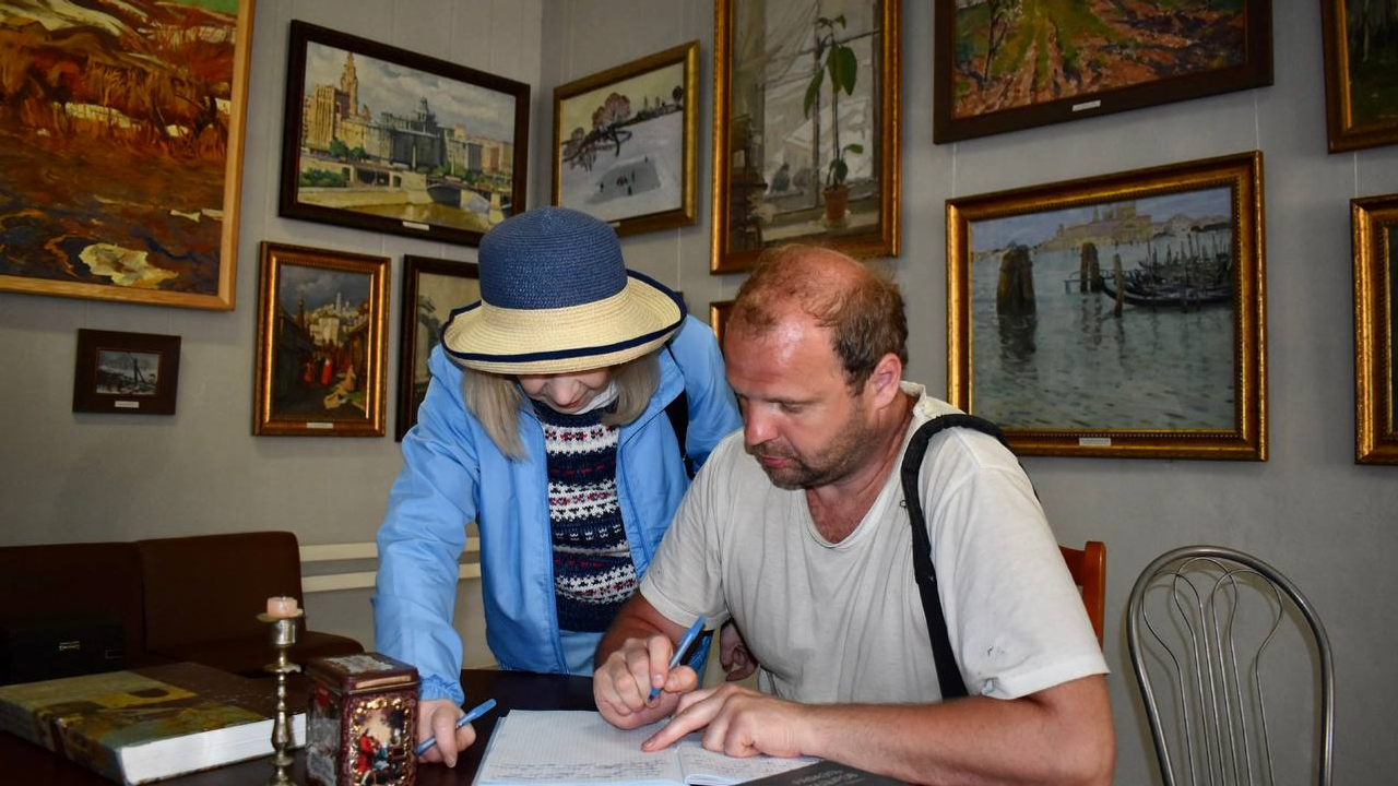 «Я побывал на академической даче художников имени Репина и там была картинная галерея имени Веницианова в поселке Солнечный. У меня был вопрос - где еще такие галереи именно в селе? И вот наконец-то, в селе Воскресенское картинная галерея, которая потрясла своей масштабностью. И меня очень удивило, что такие художники как Гелий Михайлович Коржев, Виктор Иванов, Петр Павлович Оссовский, Алексей Петрович Ткачев провели здесь детство. Это особая гордость побывать в этом месте и ощутить дух пребывания великих художников в детстве, которые именно здесь начинали свой путь. Это просто великолепно», - делится своими эмоциями художник из Пскова Юрий Гордеев.