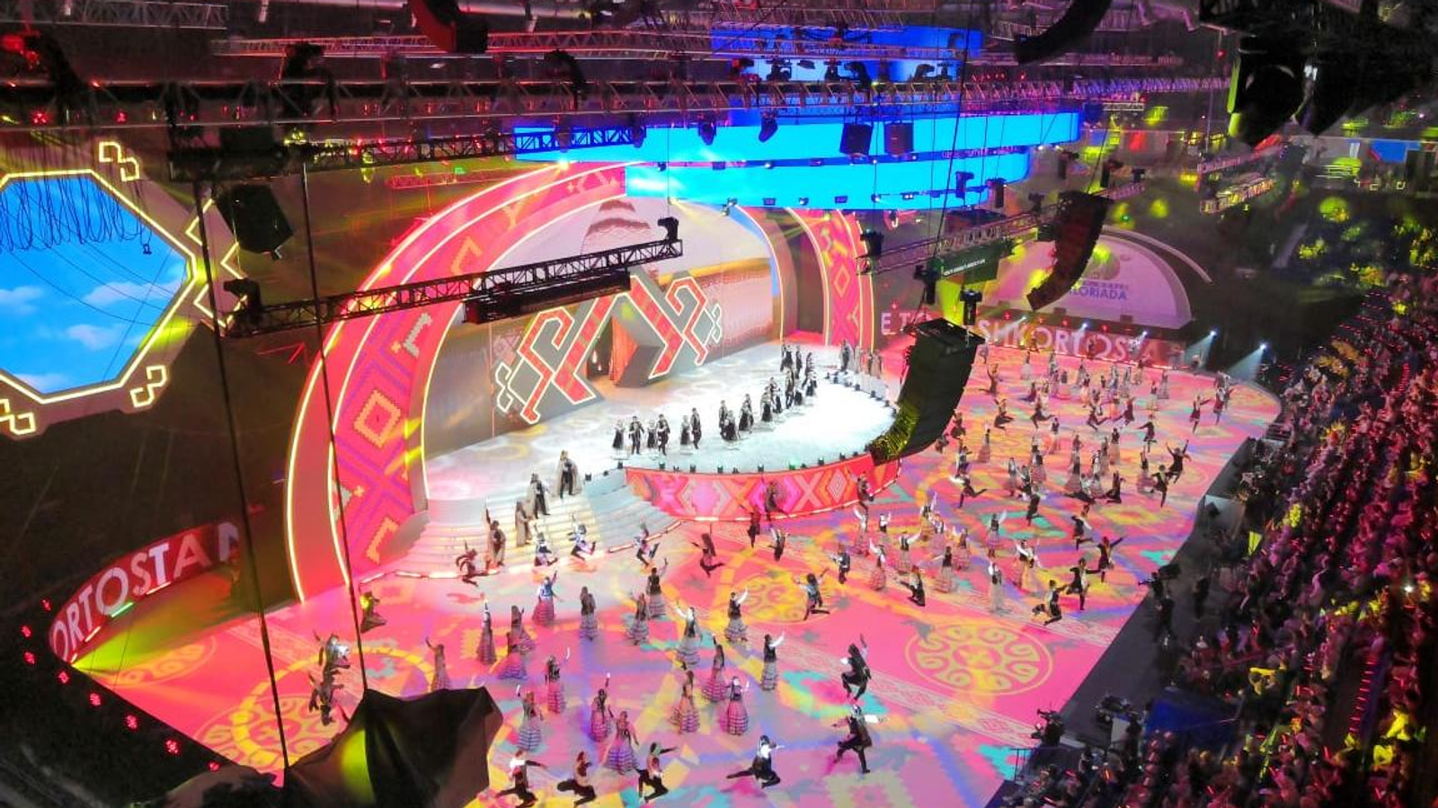 Открытие Фольклориады - это больше 1000 артистов, более 500 интеллектуальных световых приборов, 800 квадратных метров светодиодных экранов, уникальные механизмы и системы автоматизации, разработанные специально для церемонии открытия, десятки самых современных лазерных видеопроекторов, более 100 кВт звукового оборудования, дымовые и крио эффекты.