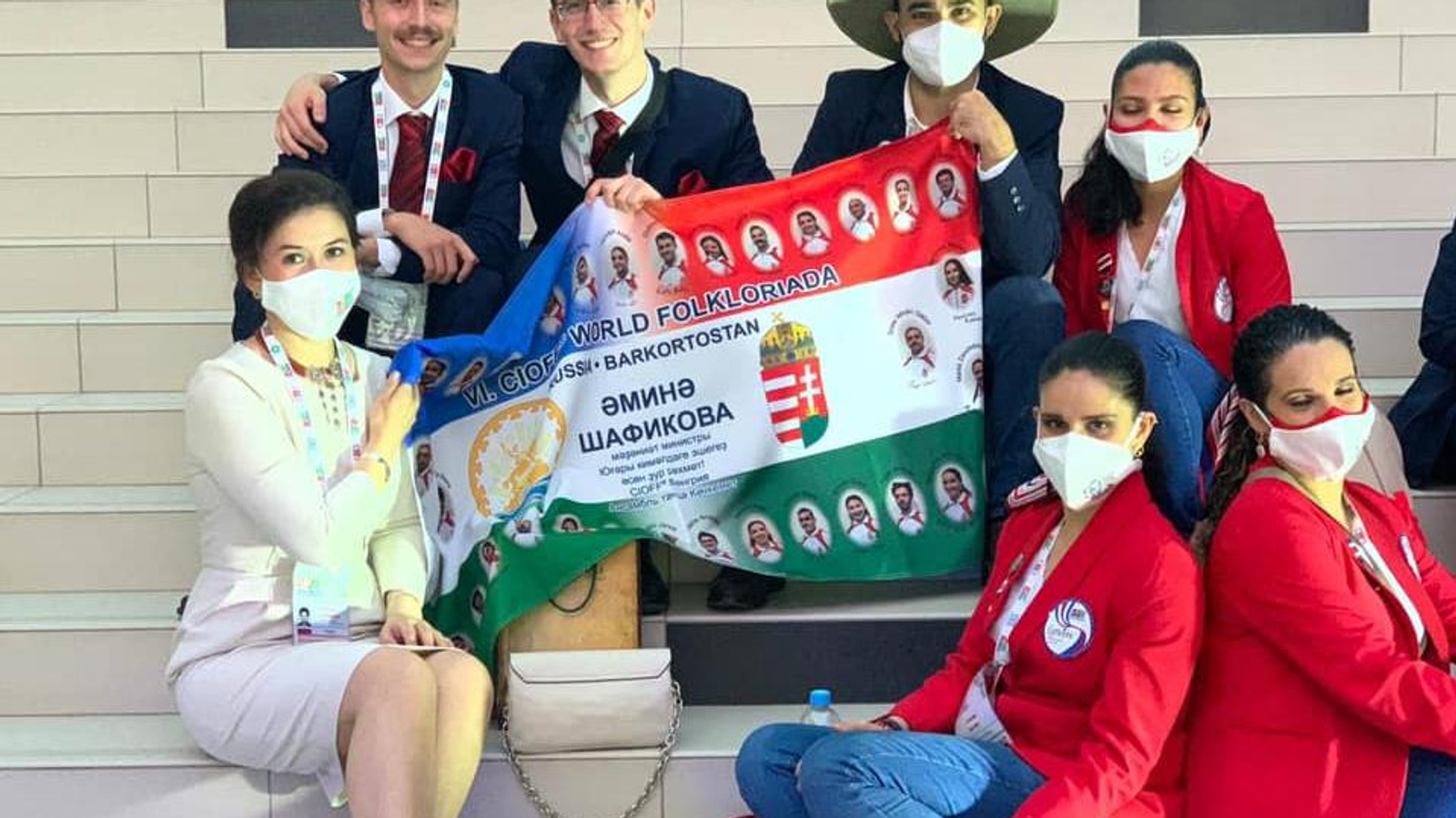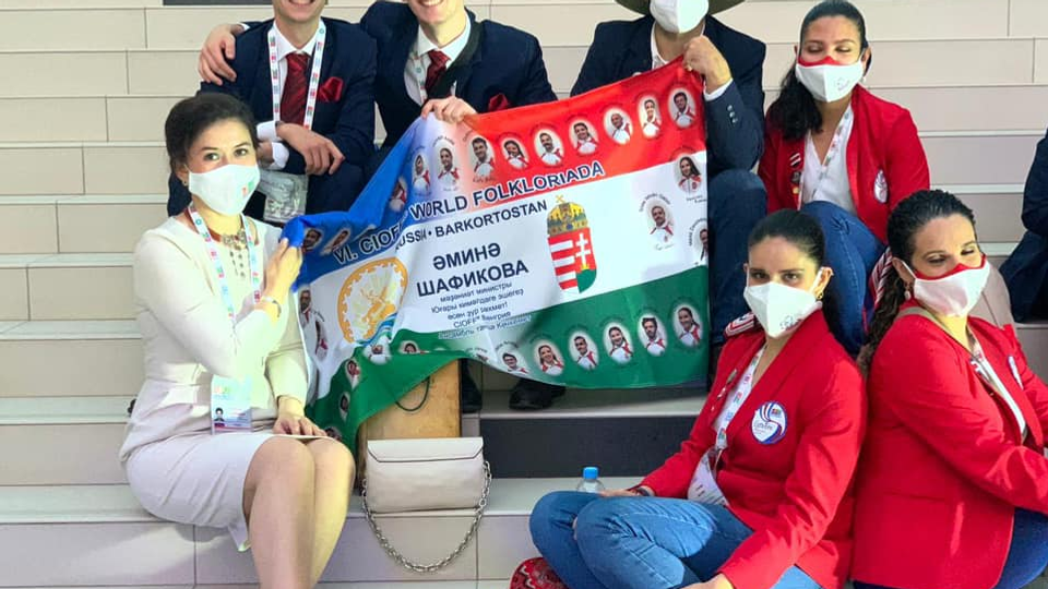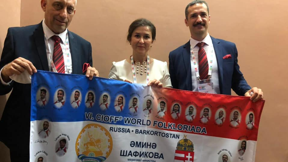 Для VI Всемирной Фольклориады CIOFF делегация Венгрии приготовила необычный подарок. В Уфу прибыл танцевальный коллектив «Кечкемет», который преподнес министру культуры Башкортостана Амине Шафиковой флаг дружбы.