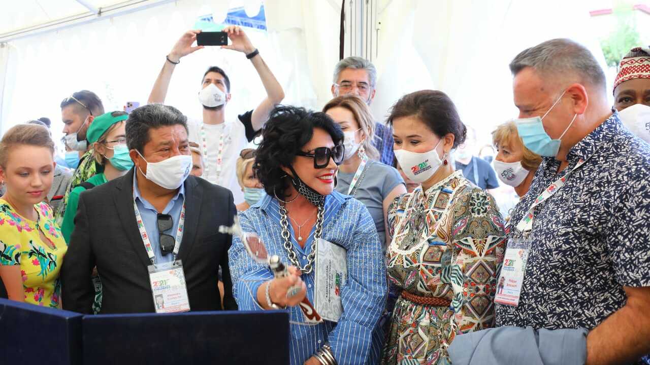 Открыли выставку президент Международного совета организаций фольклорных фестивалей и традиционных искусств CIOFF Филипп Боссан, министр культуры Башкортостана Амина Шафикова, Посол Фольклориады Надежда Бабкина, вице-президент CIOFF по делам культуры Алехандро Камачо, директор Российского дома народного творчества Тамара Пуртова.