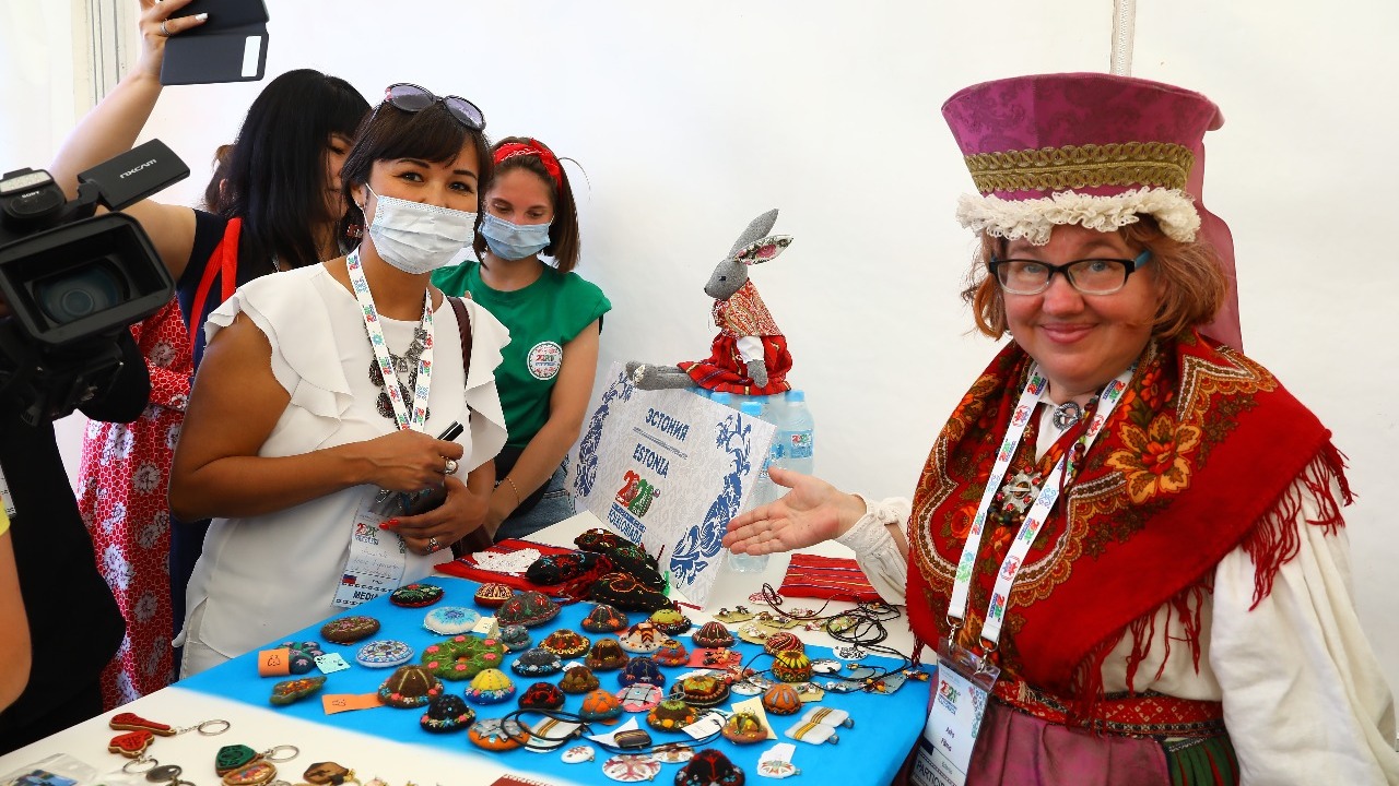 Эстонские народные узоры представлены на брошках, которые мастер Астра делает из войлока своими руками. Изготовление одной брошки занимает около одного дня. Киргизские мастера привезли изделия из глины, кожи и войлока.