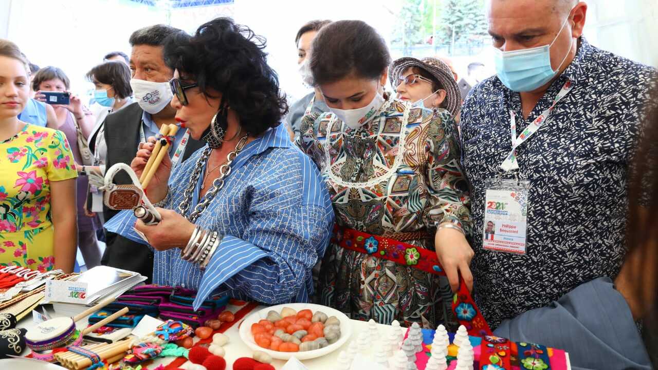 В рамках VI Всемирной Фольклориады CIOFF на площади перед конгресс-холлом «Торатау» открылась Международная выставка промыслов и ремесел. Представители стран-участников события развернули лавки со своими оригинальными сувенирами, изготовленными собственными руками.