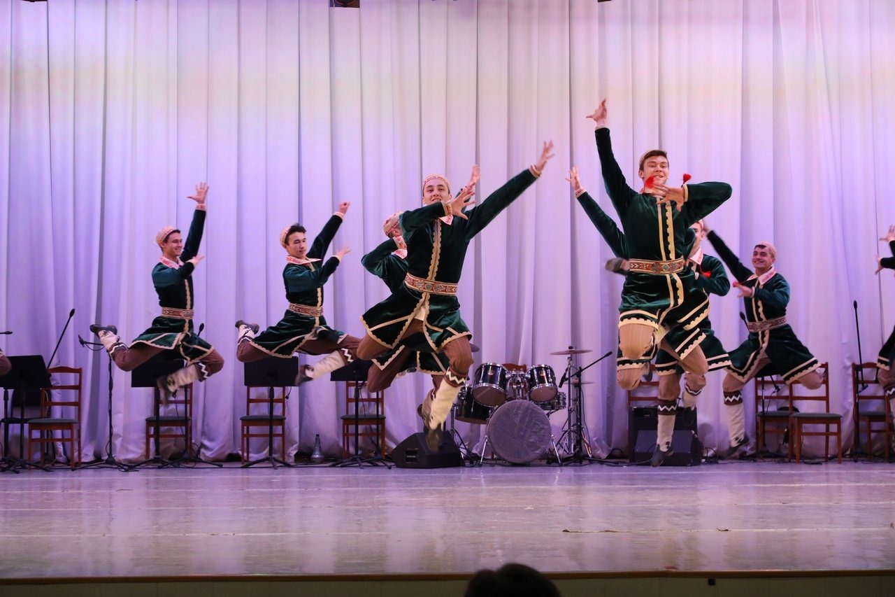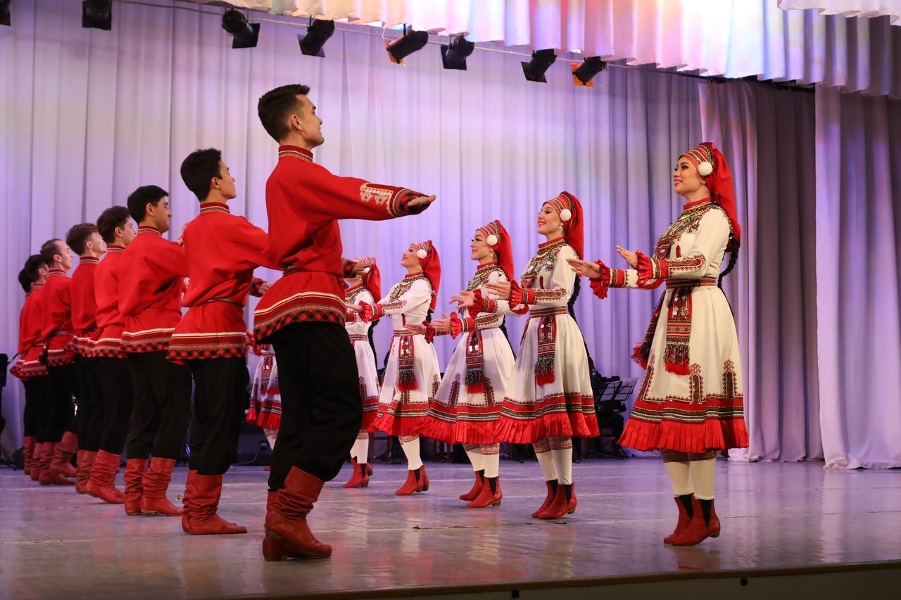 «В репертуаре нашего Ансамбля были танцы всех народов, проживающих в Поволжье, кроме мордовского. В этом году мы наконец осуществили эту постановку. В Мордовии есть село Левжа, в этом танце используются основные хореографические элементы, которые присущи этому селу: у девушек своеобразные движения руками, у ребят выпады с правой ноги и правой руки. В этом изюминка мордовского танца. Эскизы костюмов постановщики тоже привезли с собой», - прокомментировал педагог-репетитор, заслуженный артист РФ Рим Абдульманов.