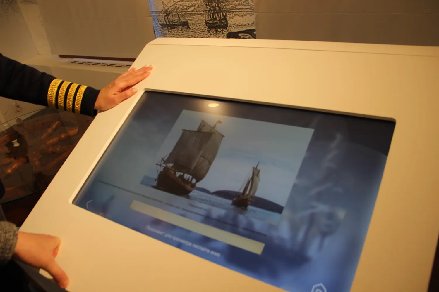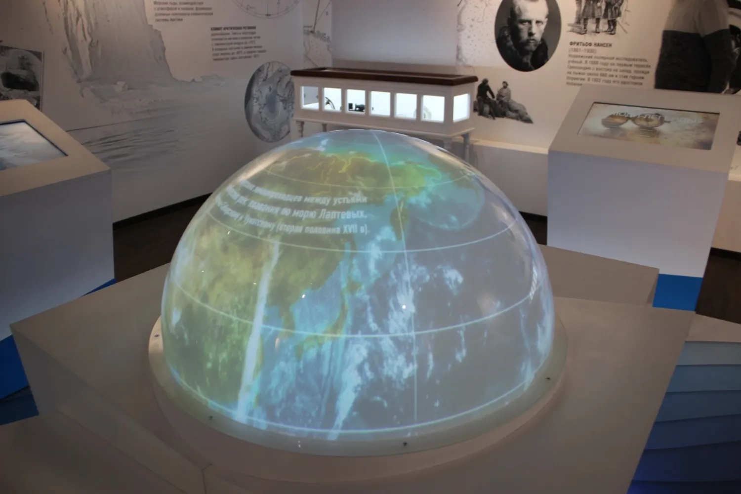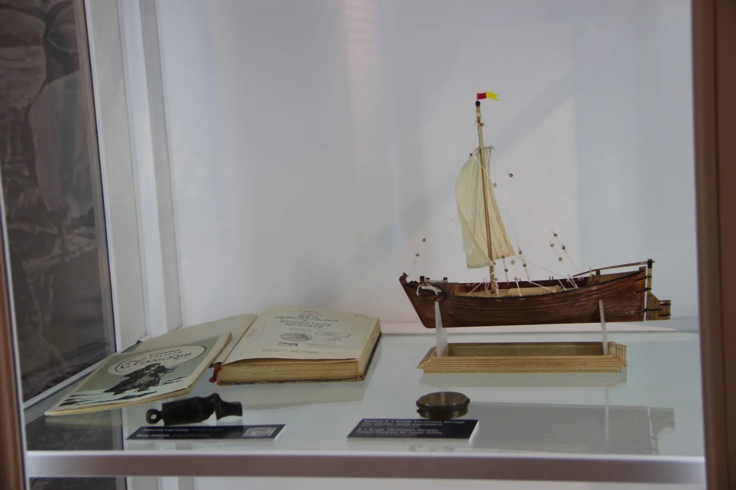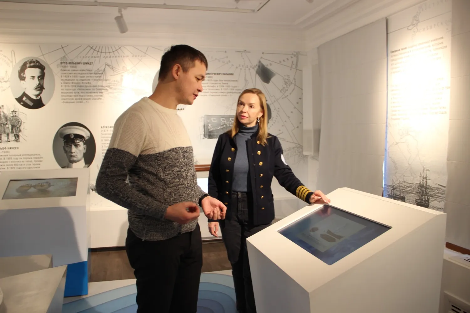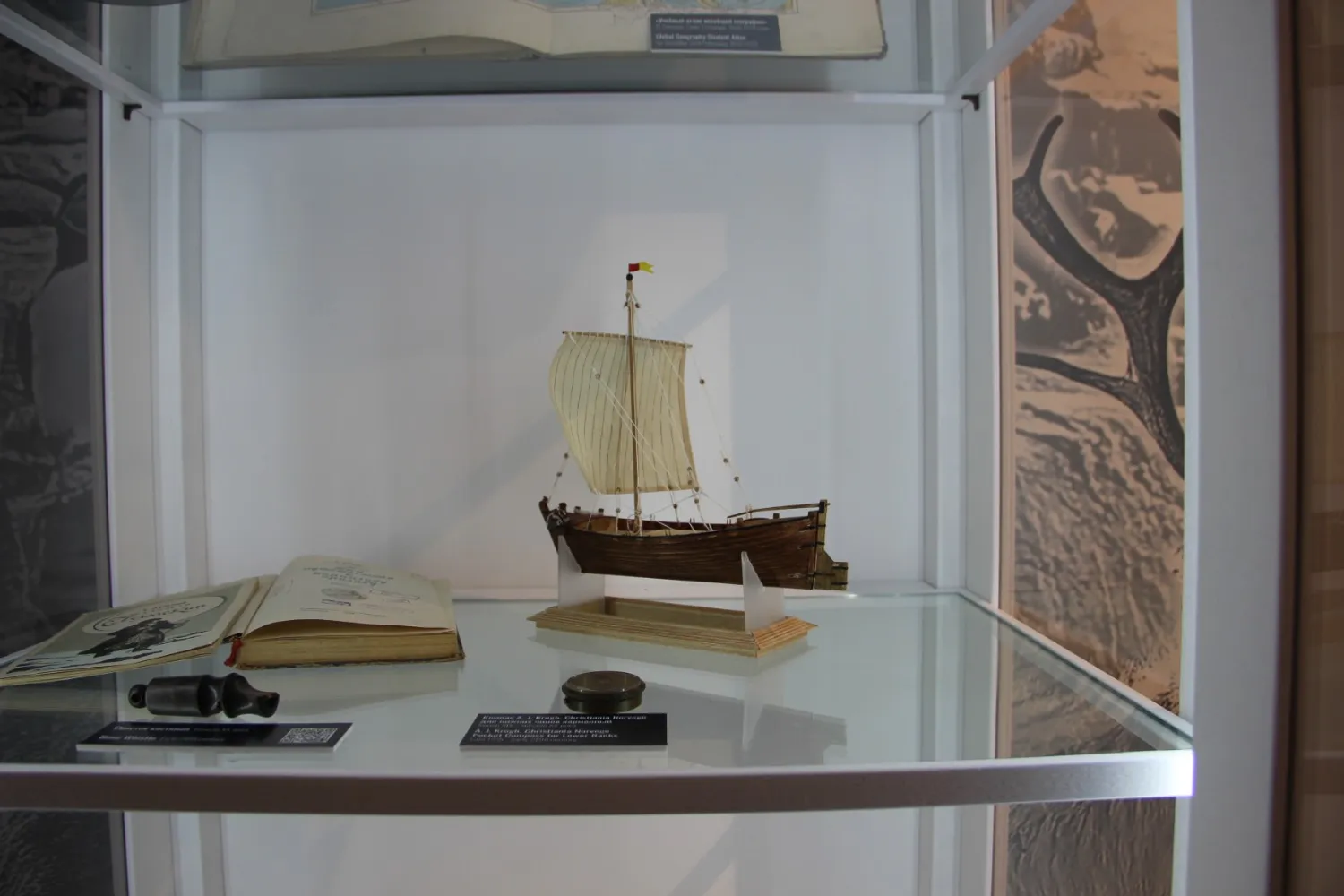 «Это у нас вводный зал — История освоения Арктики. Здесь посетители могут ознакомиться с темой освоения Севера. У нас здесь три информационных киоска: первый — это природа, животный мир, ландшафты, второй — люди-легенды, которые внесли наибольший вклад в освоение Арктики, а третий зал посвящен истории экспедиций. В этом зале у нас есть тематические вещи, связанные с морскими путешествиями, исследованиями, — старинные бинокли, компасы, карты, книги, судовое медное ведро. Перед открытием музея у нас была достаточно большая покупка экспонатов в Санкт-Петербургском музее, и небольшая часть экспонатов поступила из Национального музея Башкортостана», — сообщила научный сотрудник музея Янина Свице.