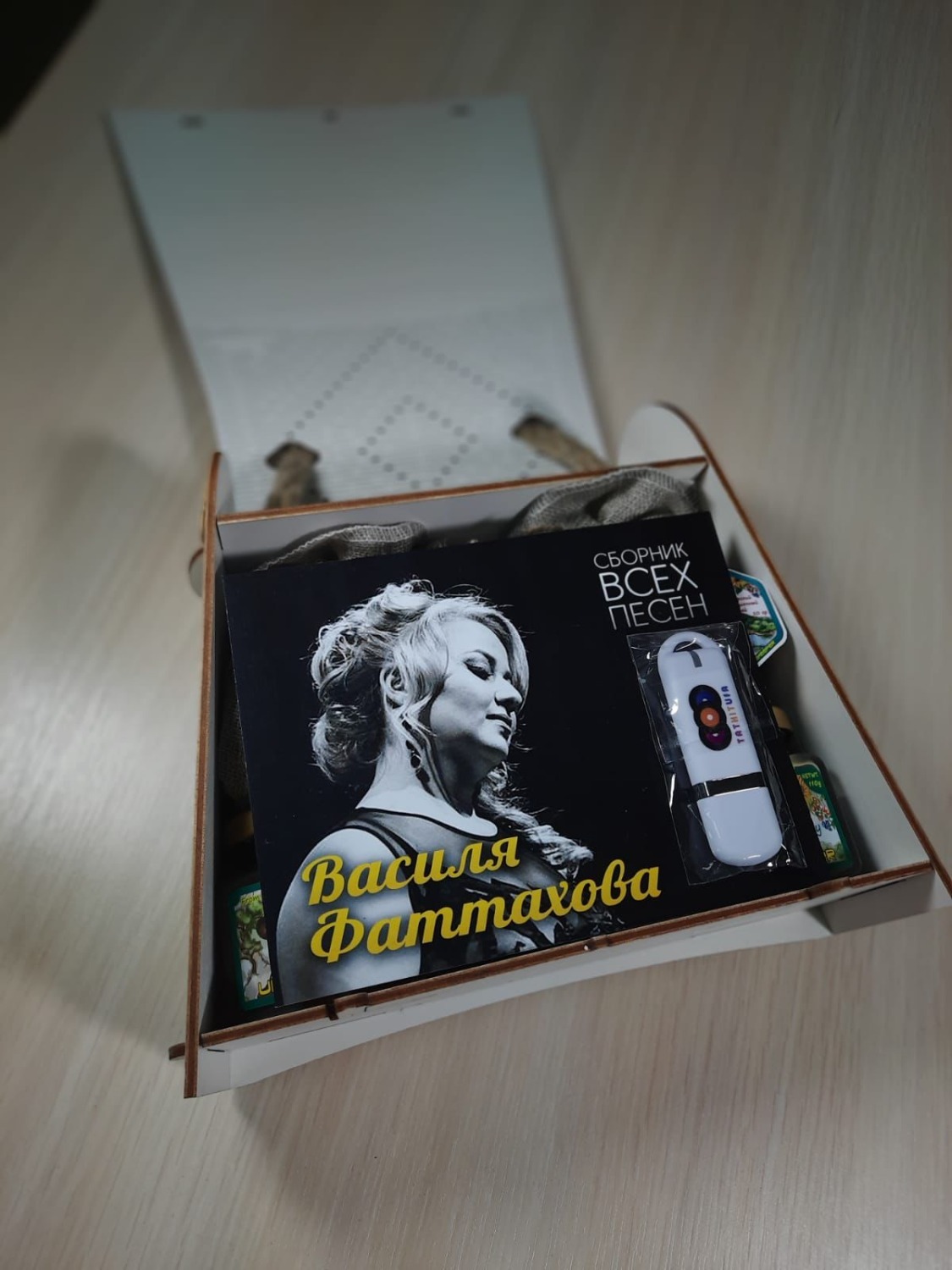 В составе набора: сборник со всеми песнями Васили, натуральный башкирский мёд и натуральный башкирский чай из трав. Как сообщил «Башинформу» Ильгиз Абдракипов, во флеш-USB вошли записи 63 песен. Наборы в ограниченном количестве будут представлены на концертах и каждый желающий cможет их приобрести.