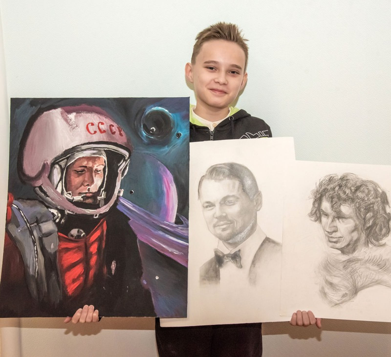 Еще одна работа Гордея, заслужившая высокую оценку жюри британского конкурса, посвящена космонавту Юрию Гагарину. Сейчас картина находится в Дальневосточном аэрокосмическом центре, как победитель Всемирного конкурса «Дорогой первых», который был посвящен 60-летию полета человека в космос.