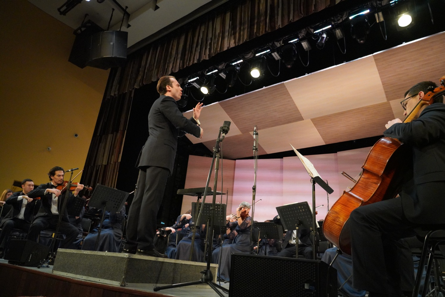 Открыла концерт симфоническая поэма «Салават», исполнение которой оркестр назвал премьерным. Музыка поэмы строится на башкирских народных песнях «Салават» и «Урал». Как отметили в оркестре, Фортепианный концерт в трех частях и «Праздничная увертюра» также были исполнены впервые.