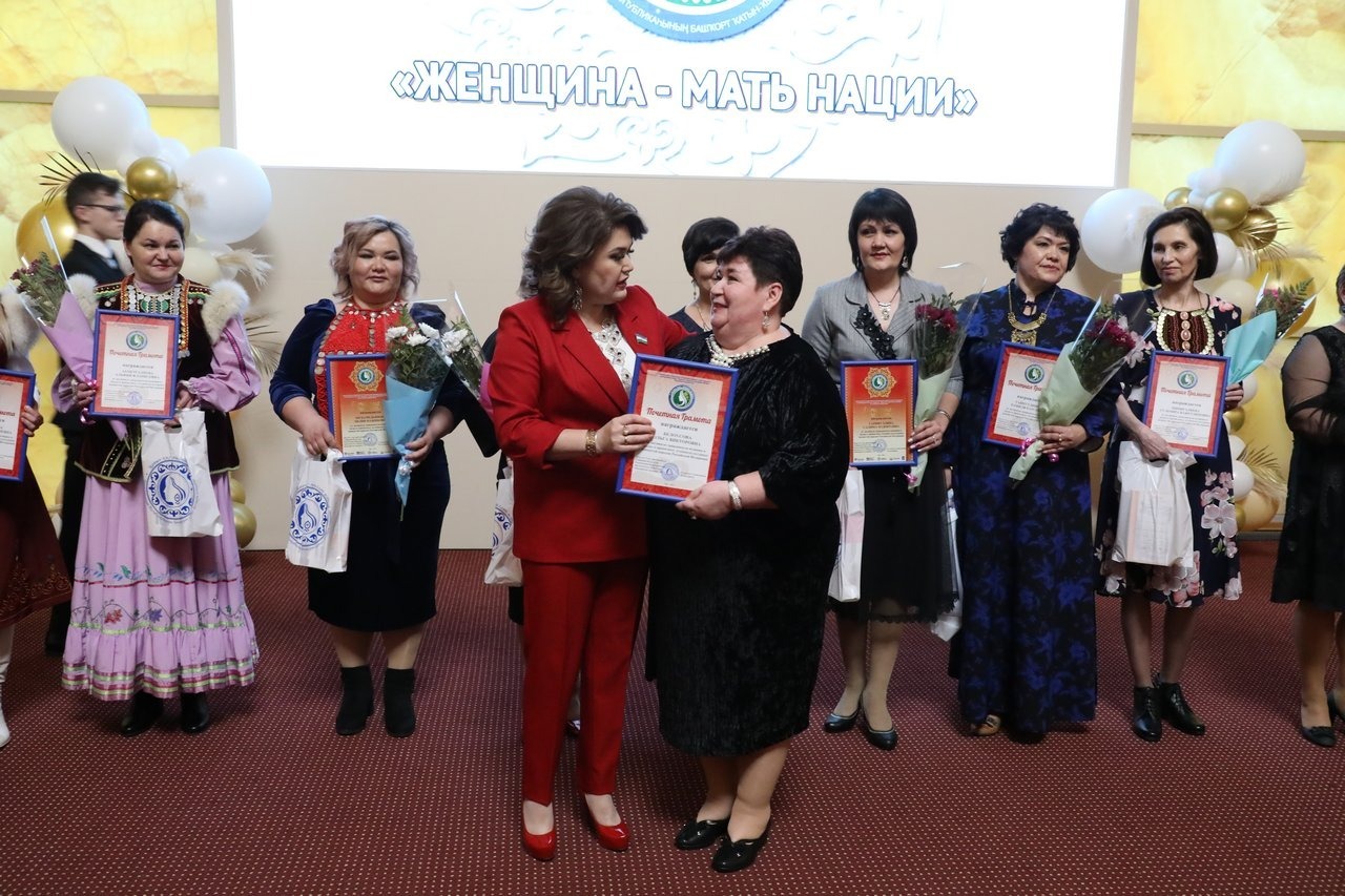 Автор и руководитель проекта «Женщина — мать нации», председатель Региональной общественной организации развития статуса женщины и активизации ее роли в обществе «Общество башкирских женщин» Республики Башкортостан, депутат Государственного Собрания - Курултая Республики Башкортостан, доктор филологических наук Гульнур Кульсарина открыла торжественную часть мероприятия чествованием победителей в номинации «Женщина-мать» — многодетных матерей.