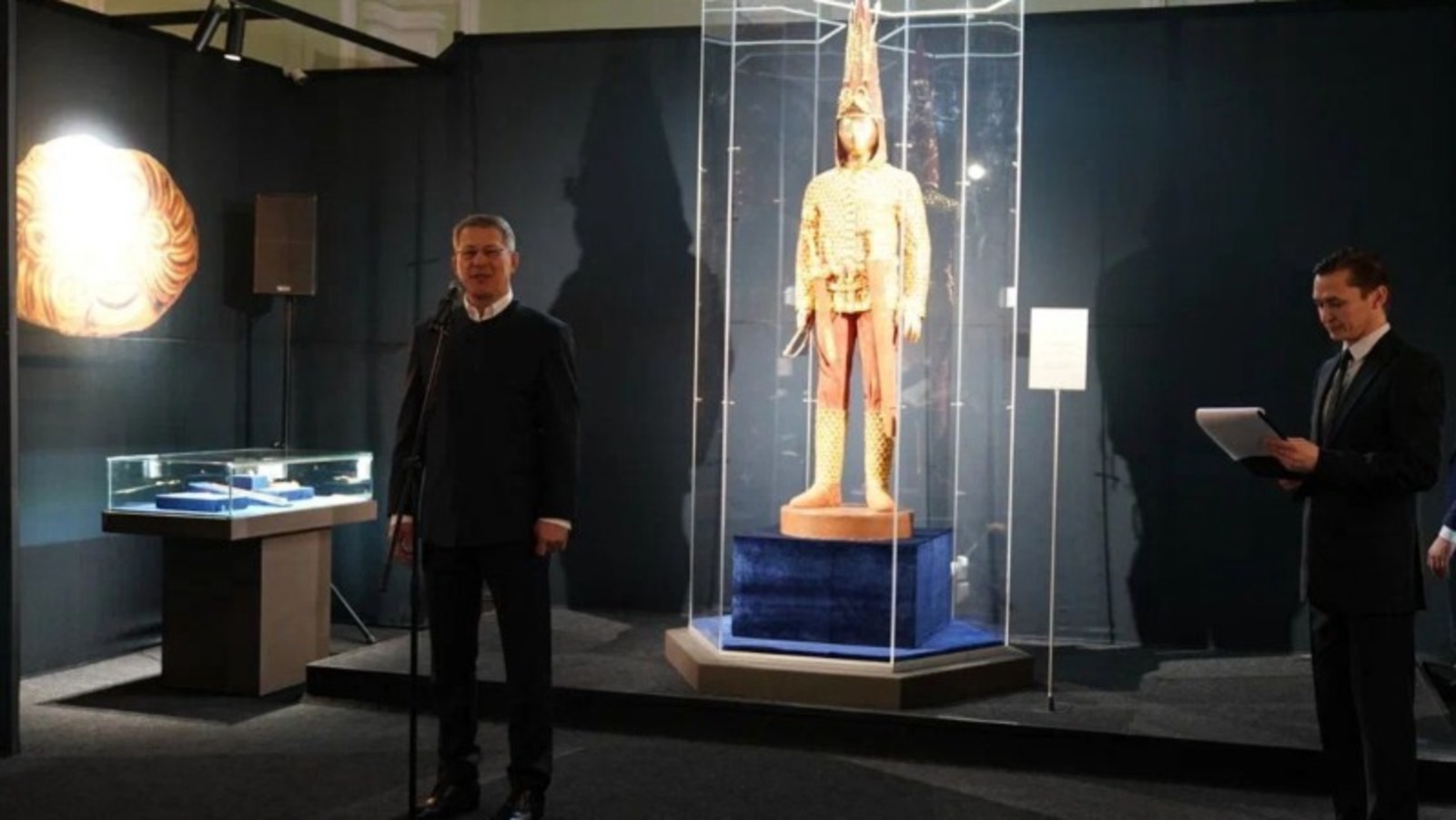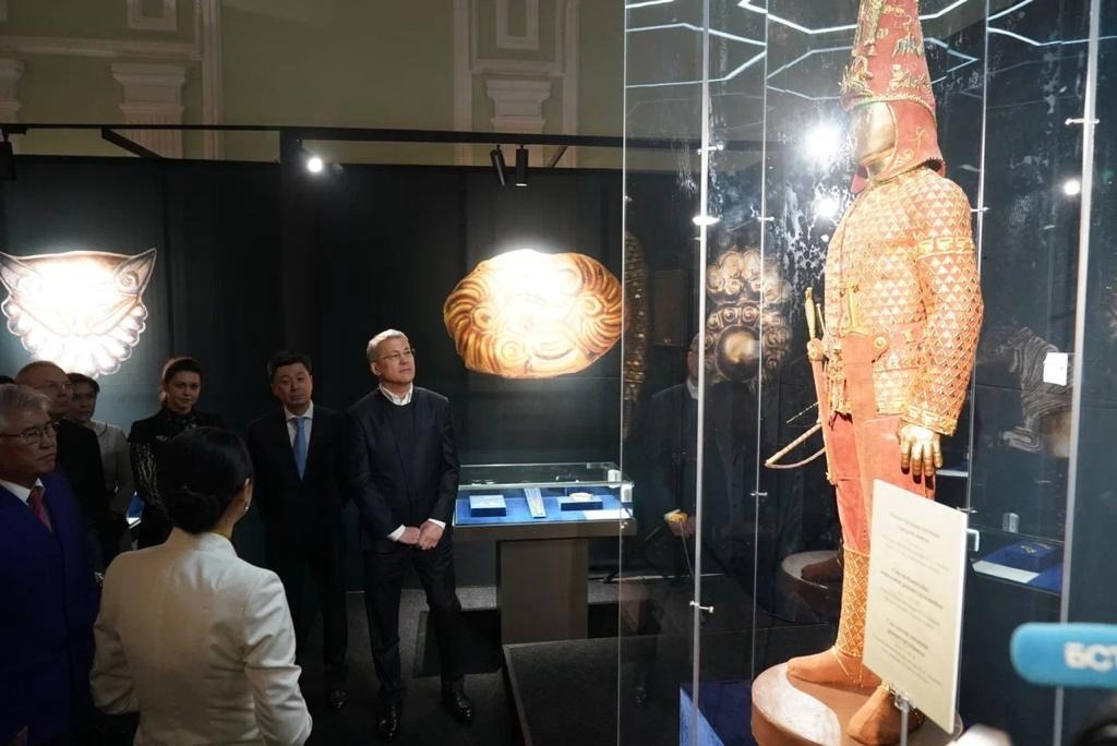 «Когда наша делегация в прошлом году встречалась с братьями-казахами на их земле, мы договорились и о культурном сотрудничестве. В Национальном музее в Нур-Султане меня восхитил «Золотой человек». Это украшения и другие артефакты из захоронения сакского царя, которые обнаружили на раскопках кургана Иссык в 1960-70-х. Экспозиция с большим успехом выставлялась во многих музеях мира. Я попросил организовать выставку и у нас в республике, чтобы наши жители тоже смогли увидеть эту красоту. Сегодня мы открываем ее в Национальном музее Башкортостана.