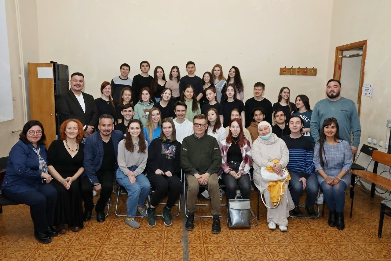 Актер поделился со студентами своими воспоминаниями об учебе и секретами актерского ремесла. С особым трепетом и благодарностью Борис Васильевич отозвался о своих ВГИКовских учителях — Борисе Бибикове и Ольге Пыжовой, учительнице литературы московской школы № 124 Ольге Александровне Ланской.