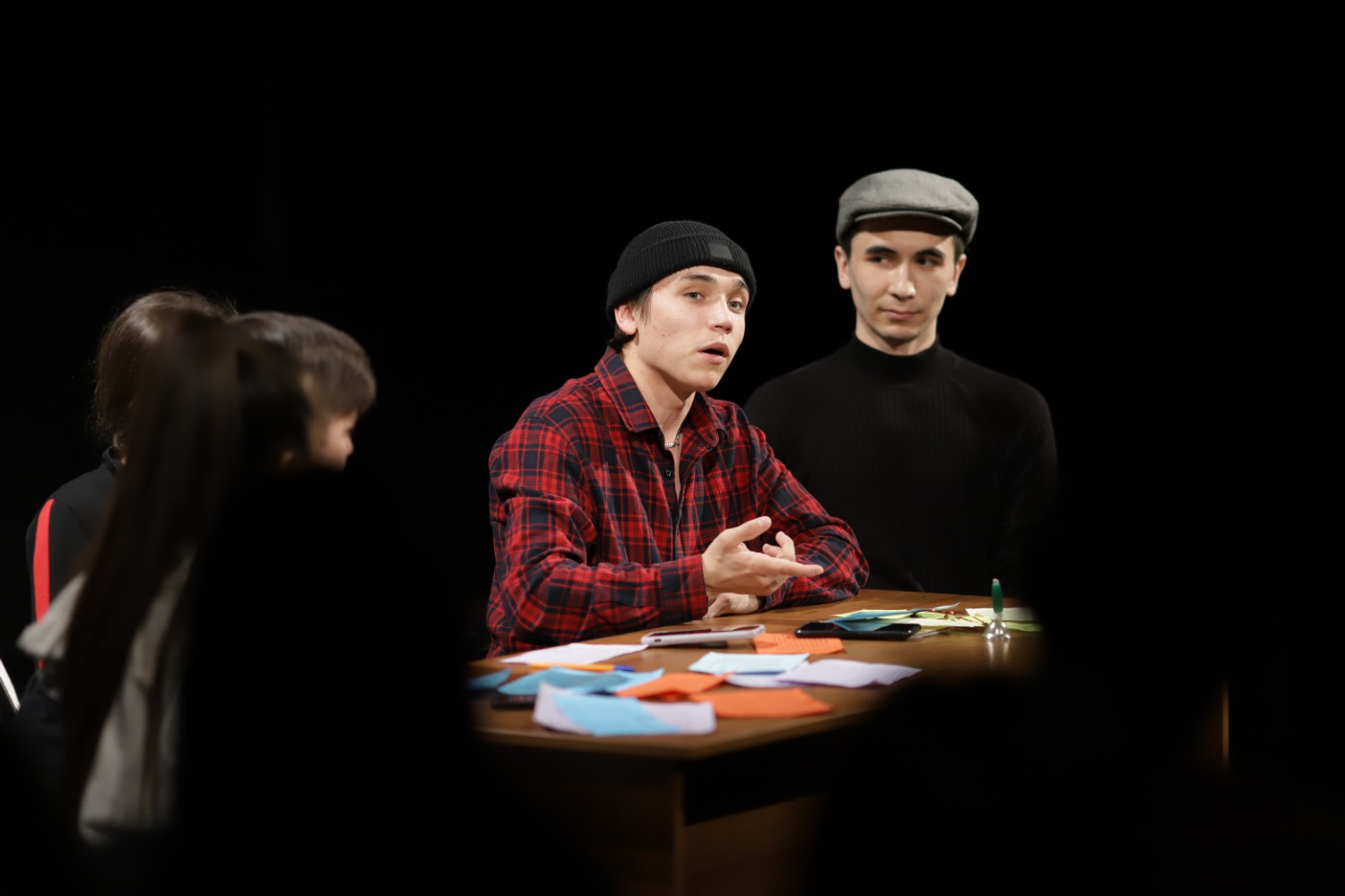 У каждого из молодых актеров было по несколько ролей, развернутые монологи, в которых они смогли достоверно передать характеры и манеры своих персонажей. Наркас Калмурзина, Ильгизар Кудашев, Азамат Шагисултанов, Залифа Ягудина, Байзигит Мухарлямов поделились, что работа над спектаклем стала для них переосмыслением взглядов на судьбы простых людей, на труд учителя. Для Наркас, выросшей в городе, проблемы сельских учителей стали открытием. Для Азамата, родители которого работают в сфере образования, наоборот, - тема была знакома с детства. Байзигит Мухарлямов отметил, что его поразила судьба учителя и поэта, многодетного отца, вынужденного после увольнения стать рабочим-вахтовиком. В его стихах отражается глубоко философское отношение к жизни.