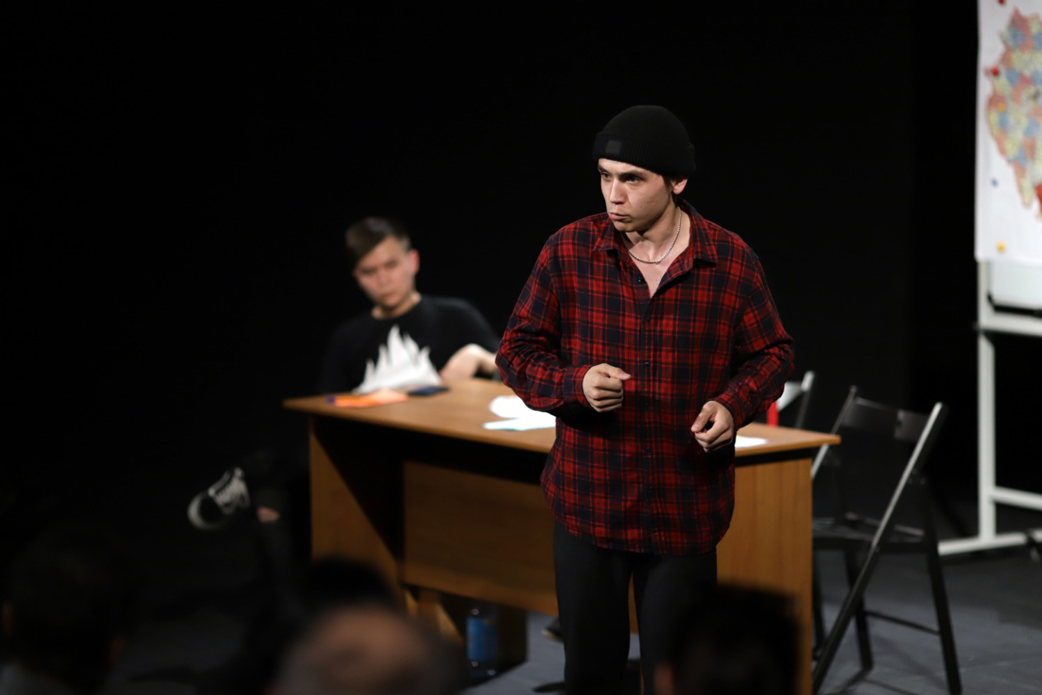 Еще одна из особенностей жанра — отсутствие «четвертой стены», разомкнутость сцены, которая дает актерам возможность обращаться напрямую к зрителю. В свою очередь, зритель становится соучастником действия. Острые проблемы, которая поднимаются в спектакле, не оставили зрителей равнодушными.