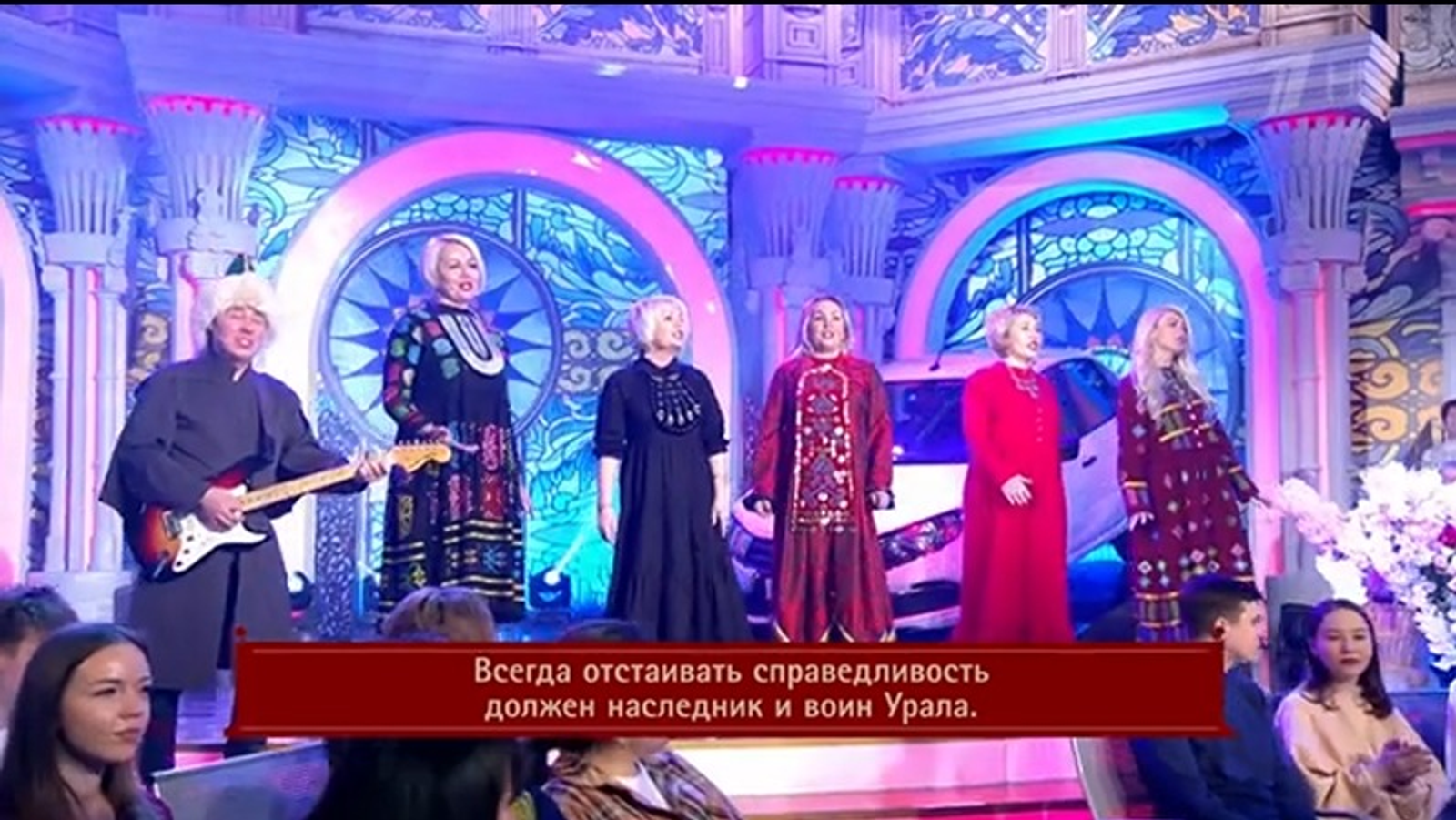 Подарок от всемирного курултая башкир в эфире Первого канала передали преподаватель Дюртюлинской детской художественной школы Гульназ Абдукаримова и члены этно-рок группы «Кая». Музыканты исполнили в студии песню в стилизованных национальных костюмах.