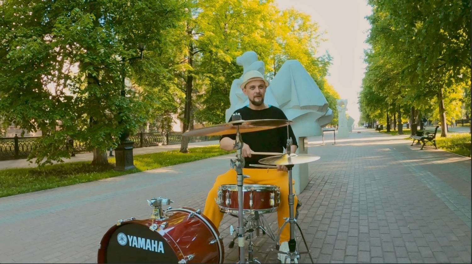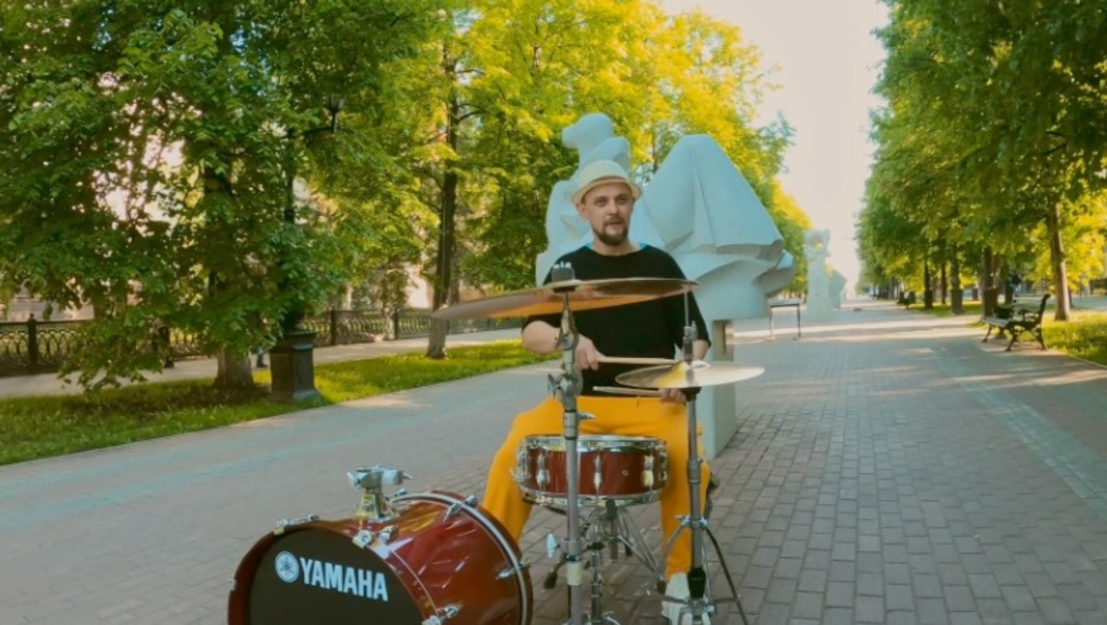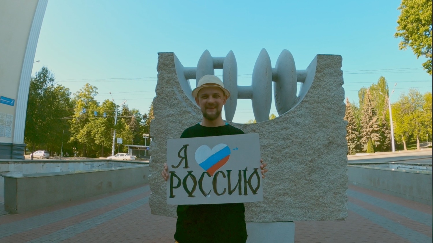 Завершает «музыкальный забег» признание «Я люблю Россию» на плакате в руках музыканта с сердечком в цветах флага. Так музыкант выразил любовь к своей стране в День России и поздравил любимый город.