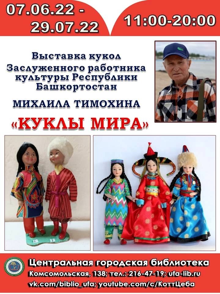 В Центральной городской библиотеке Уфы открылась выставка «Куклы мира». Автор экспозиции - заслуженный работник культуры Башкирии Михаил Тимохин.