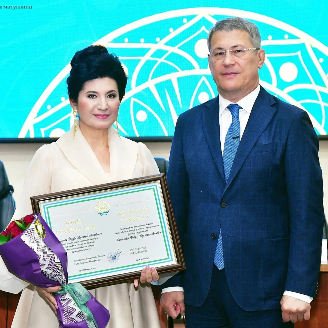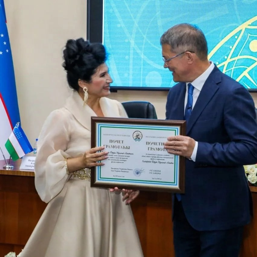 — На встрече с главой Башкортостана Радием Хабировым были подняты многие вопросы, в том числе и о возможности обменных концертов. Радий Фаритович сказал, что это обязательно случится в ближайшее время. Приятной неожиданностью стала для меня Почетная грамота правительства РБ. Я выразила слова благодарности и сказала, что очень горжусь тем, что я родилась в День Республики Башкортостан 11 октября. На что он ответил, что приглашает отметить день рождения в этом году в Уфе!