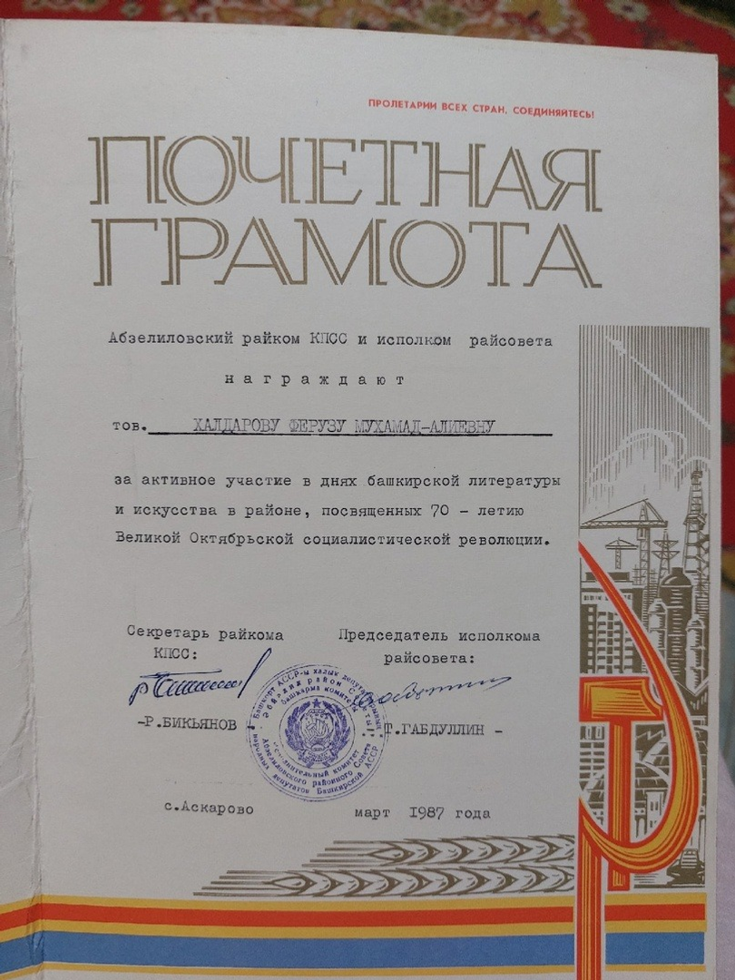— В 2007 году в Ташкент на сабантуй приехала группа «Далан». Как же я обрадовалась, увидев Минзифу Искужину, которая училась позже нас, но я её хорошо помнила. Я была неподдельно рада этой встрече. Через месяц после сабантуя мне позвонил председатель башкирского центра и предложил вести работу по организации культурно-массовых мероприятий. Так я стала заместителем председателя по культуре Башкирского образовательно-культурного центра им. А.-З. Валиди. В центре я вела музыкально-литературные вечера, посвященные выдающимся деятелям Башкортостана, вечера башкирской музыки, программы ко Дню Конституции РБ, Дням Республики Башкортостан в Узбекистане, сабантуи и многие другие мероприятия, праздники, встречи, на телевидении снимали сюжеты.