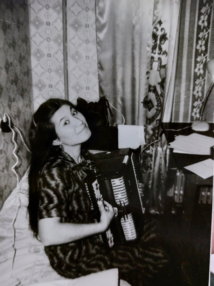 — Учась в школе, я параллельно окончила и музыкальную по классу баян — аккордеон. Принимала активное участие в школьной жизни, пела во всех концертах, смотрах и конкурсах. И с 3 класса, а может быть и раньше, я знала, кем я хочу стать. После 10 класса я пошла поступать в музыкальное училище, тогда мне казалось, что я недостаточно хорошо пою, чтобы поступать на подготовительное отделение консерватории в Ташкенте. И мне почему-то не понравилось старинное двухэтажное здание училища (позже его снесли). И я уговорила маму купить мне билет на самолёт и, не дожидаясь выпускного бала, улетела в Уфу. Документы приняли сразу на дирижерско-хоровое отделение, хотя я могла бы пойти и на народное. Прямо на вступительном экзамене мне предложили прослушаться на вокальное. Помню, как сегодня, как Альфия Каримовна прослушала меня, попросила спеть какую-нибудь песню и я тут же затянула первую пришедшую на ум песню: