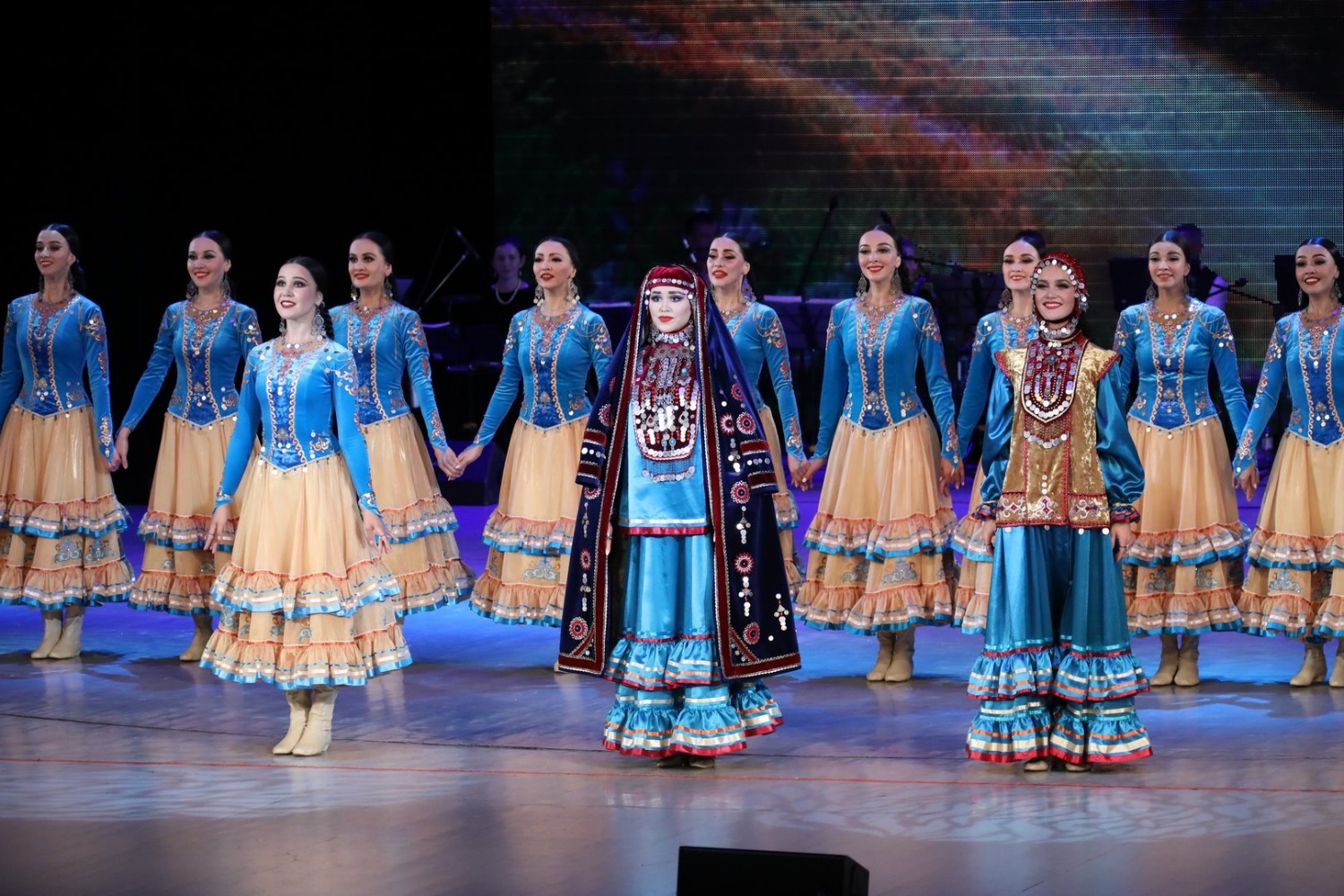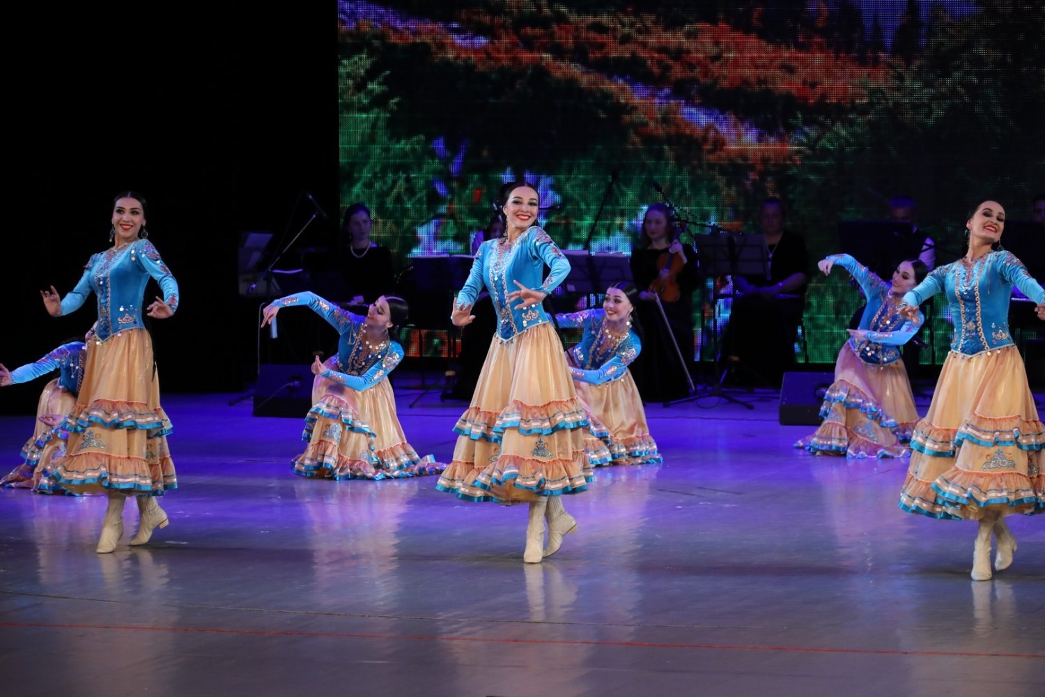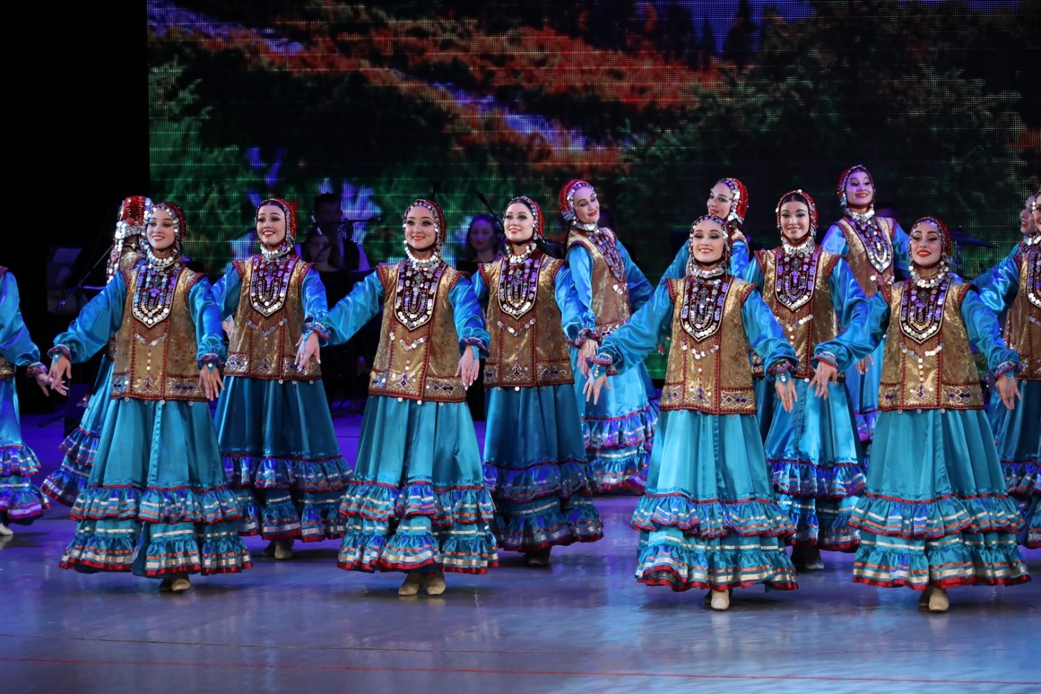 В первом отделении в сопровождении живого оркестра (руководитель Риф Муратшин) коллектив показал легендарные танцы, которые уже долгие годы радуют не одно поколение зрителей: «Зарифа», «Семь девушек», «Медный каблук», «Три брата» и другие. На концерте были представлены и композиции, премьера которых состоялась в 82-м сезоне: «Молодые сердца» (постановка Назира Байзигитова) и «Поколения» (постановка Ямили Бикбаевой).