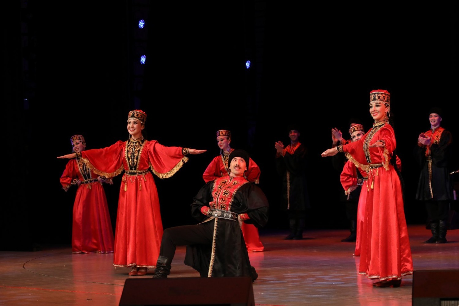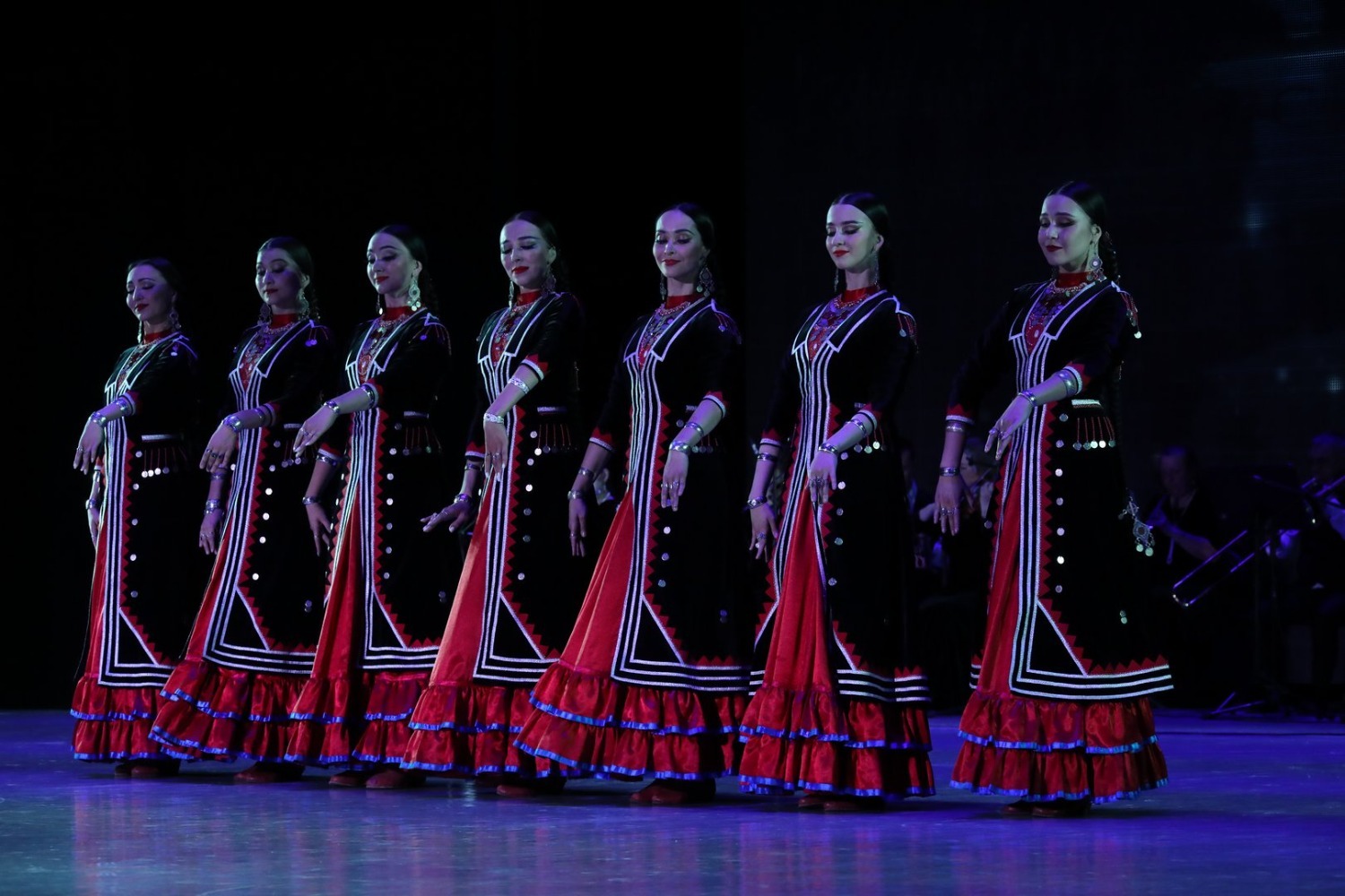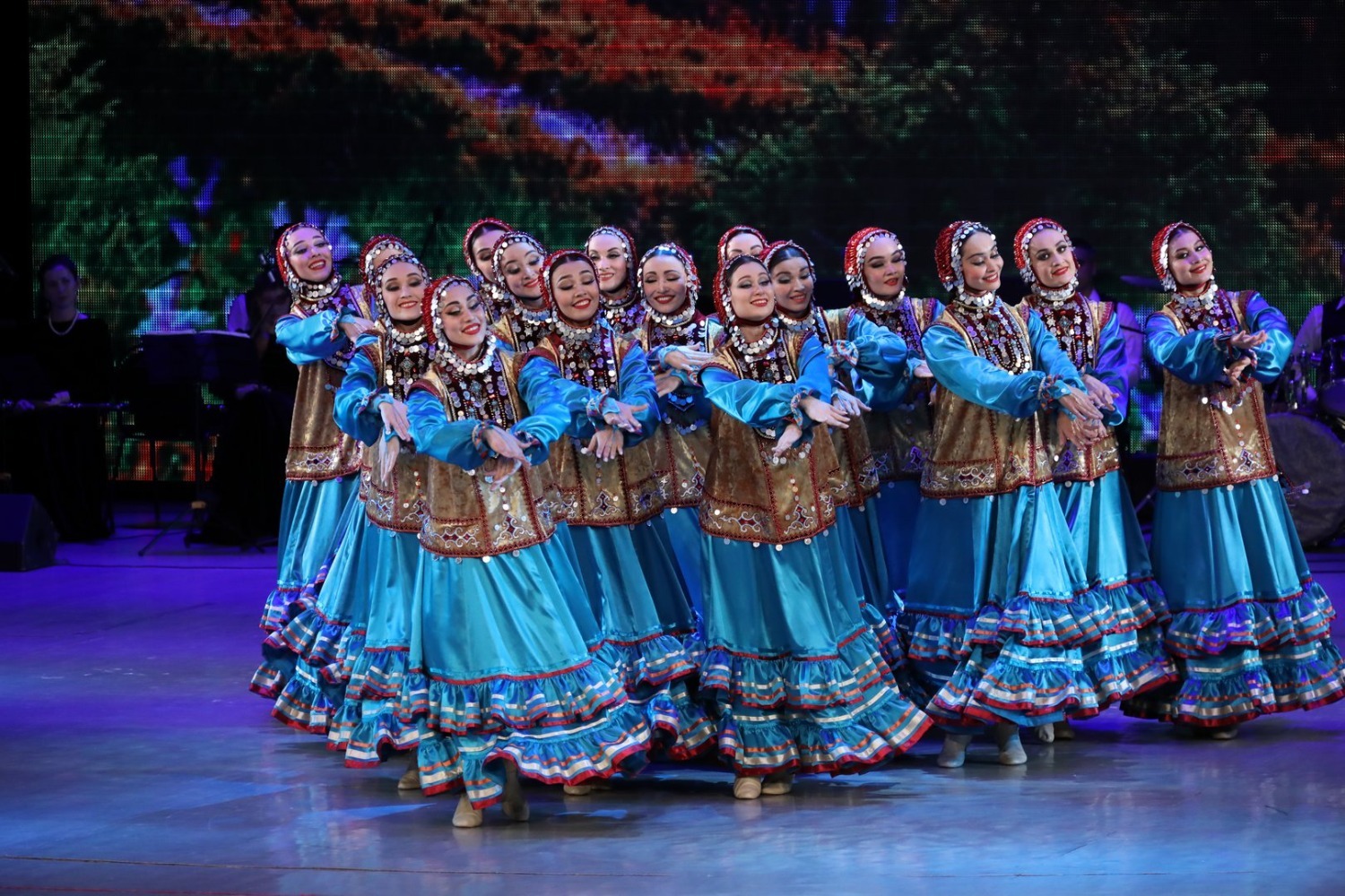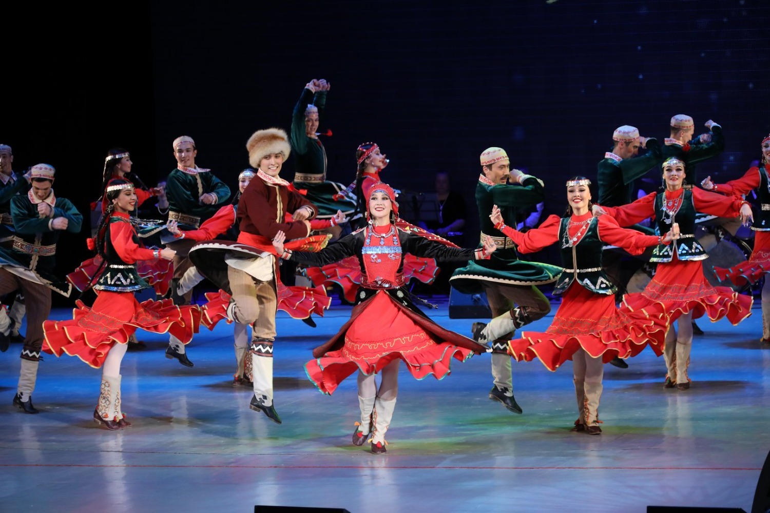 В первом отделении в сопровождении живого оркестра (руководитель Риф Муратшин) коллектив показал легендарные танцы, которые уже долгие годы радуют не одно поколение зрителей: «Зарифа», «Семь девушек», «Медный каблук», «Три брата» и другие. На концерте были представлены и композиции, премьера которых состоялась в 82-м сезоне: «Молодые сердца» (постановка Назира Байзигитова) и «Поколения» (постановка Ямили Бикбаевой).