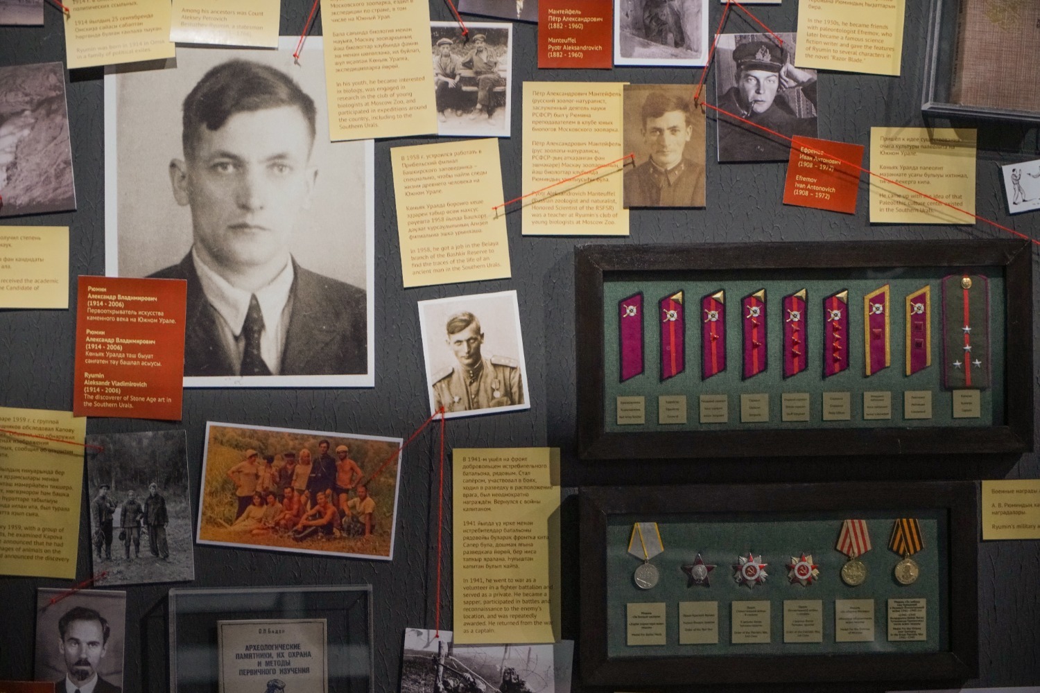 Очень много места в музее уделено истории изучения пещеры. Биография первооткрывателя рисунков пещеры Александра Рюмина представлена в виде «детективной доски». Там собраны интересные факты из жизни исследователя. Рассказывается о научной деятельности, путешествиях, подвигах, совершенных им в годы Великой Отечественной войны. Посетители музея смогут послушать интервью Александра Владимировича о работе в пещере. Уникальные аудиозаписи начала 2000-х годов предоставил сотрудник музея Алексей Солодейников.