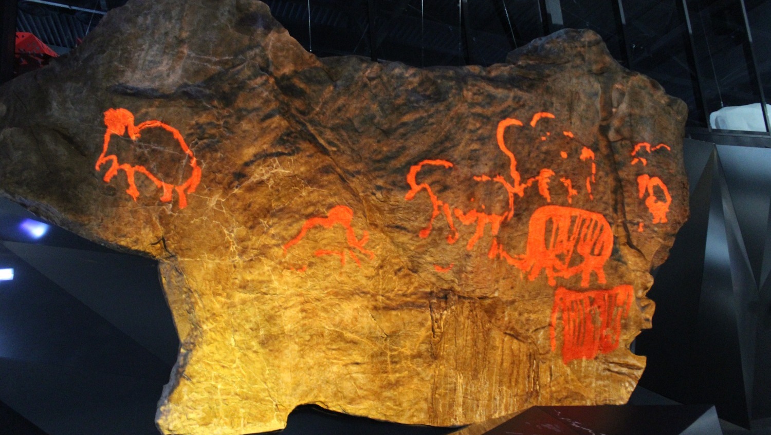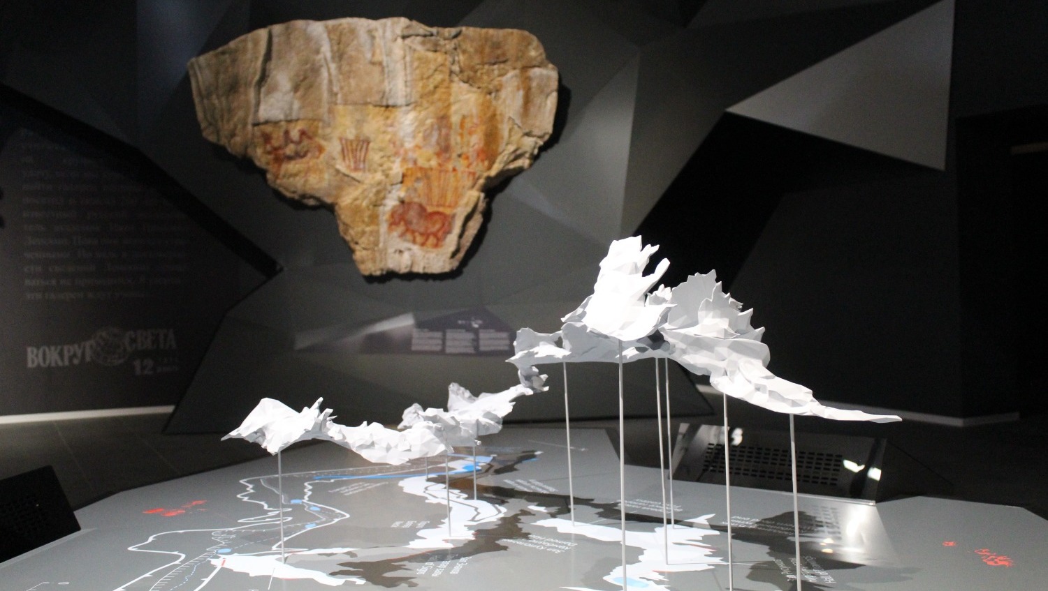 - Самое яркое пятно зала «Наскальное искусство» – это «Лошадь и знаки» с верблюдом, панно с максимально четкими рисунками. Здесь задача была одна – подсветить. Он встречает гостей при входе в зал и производит мощный вау-эффект. Мы освоили только инсталляцию – полигональную фигуру, в которую вписано панно. На плоскости этого многоугольника, а также на полигонали, в которое встроено панно «Западное», проецируем кинохронику советских времен, где рассказывается история изучения пещеры, – пояснил специалист компании, ответственной за создание экспозиции музея.