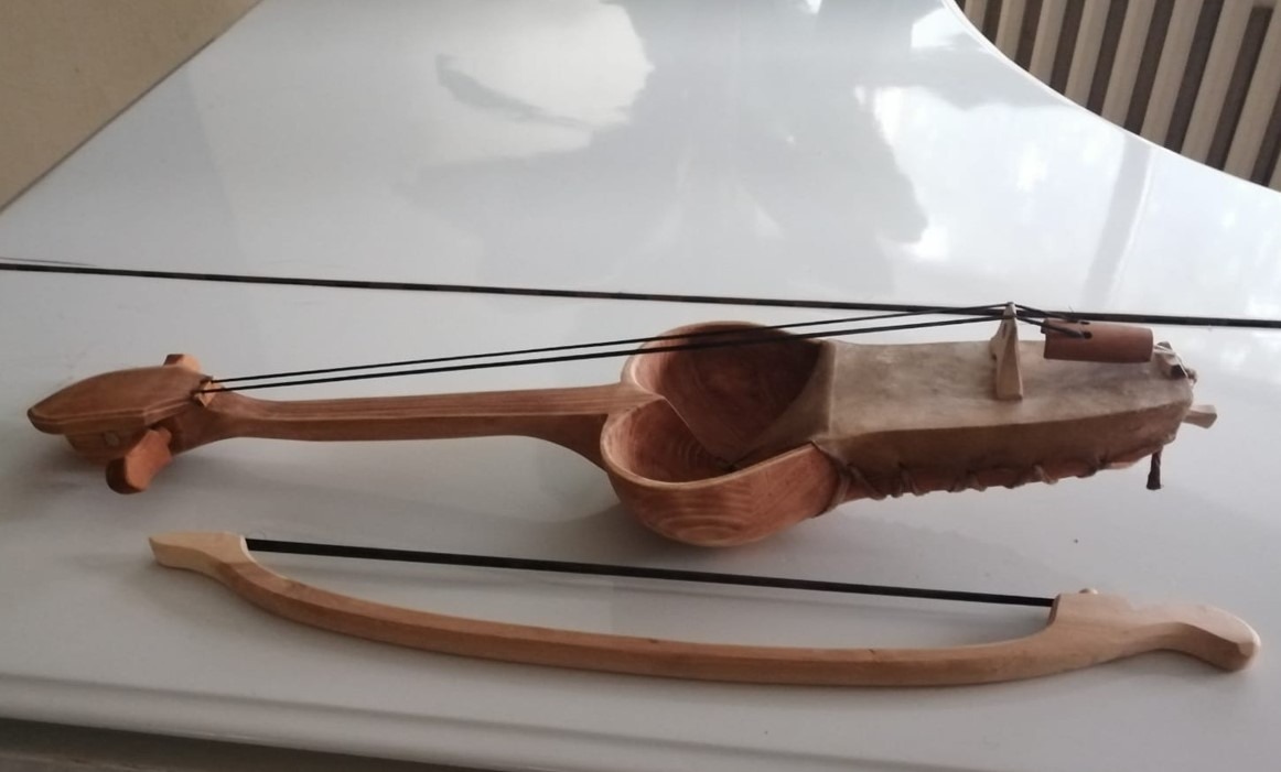 Инструменты изготовлены так, как делали в старину. Корпус кыл-кубыза выдолблен из цельного куска ели. Вместо верхней деки – козья шкура, струны и смычок – из конского волоса. Для одной струны использованы 50 волос четырехлетнего жеребца одной толщины и одной длины, для второй – 80. Волосы переплетены и стянуты в колки.
