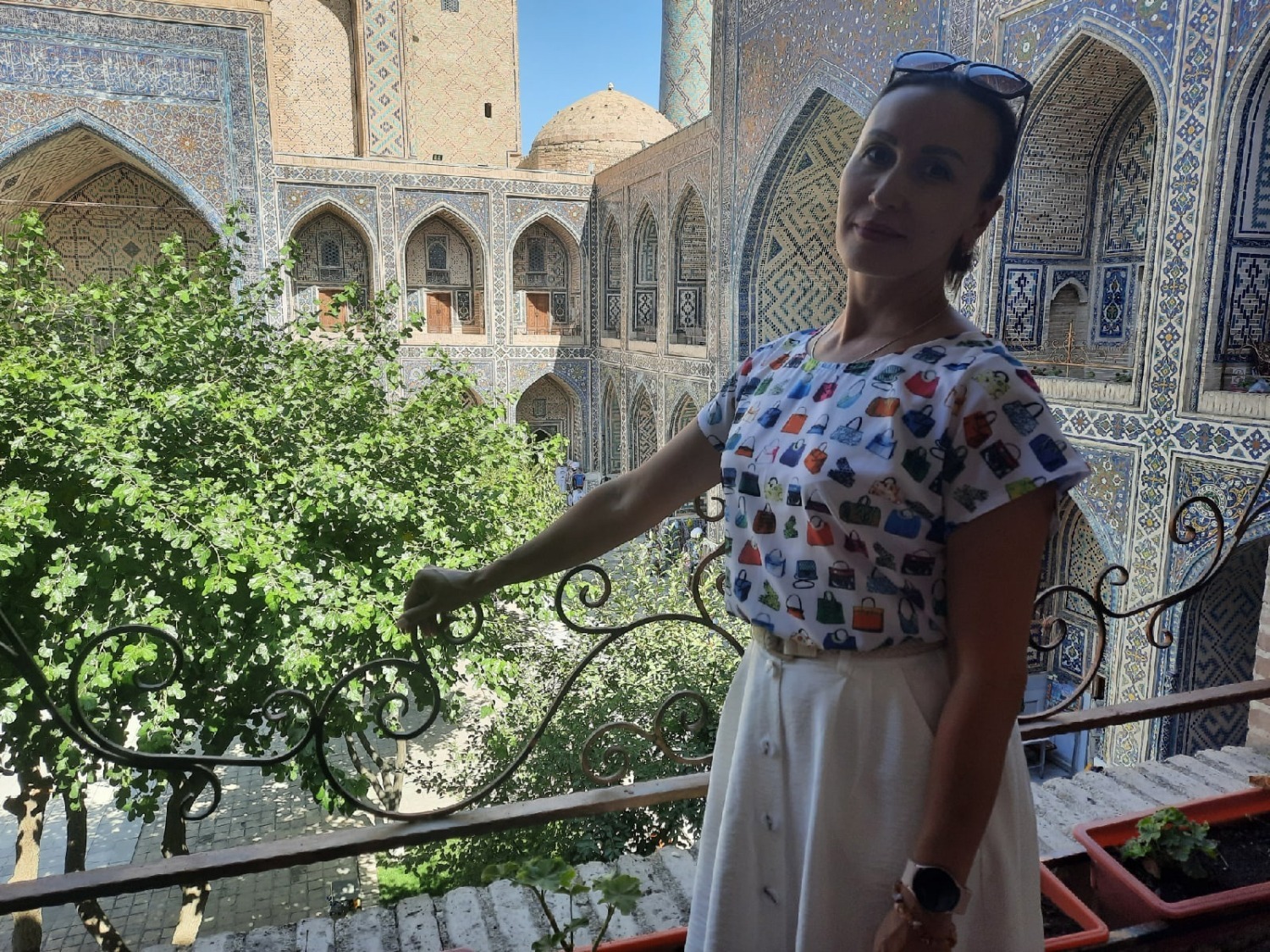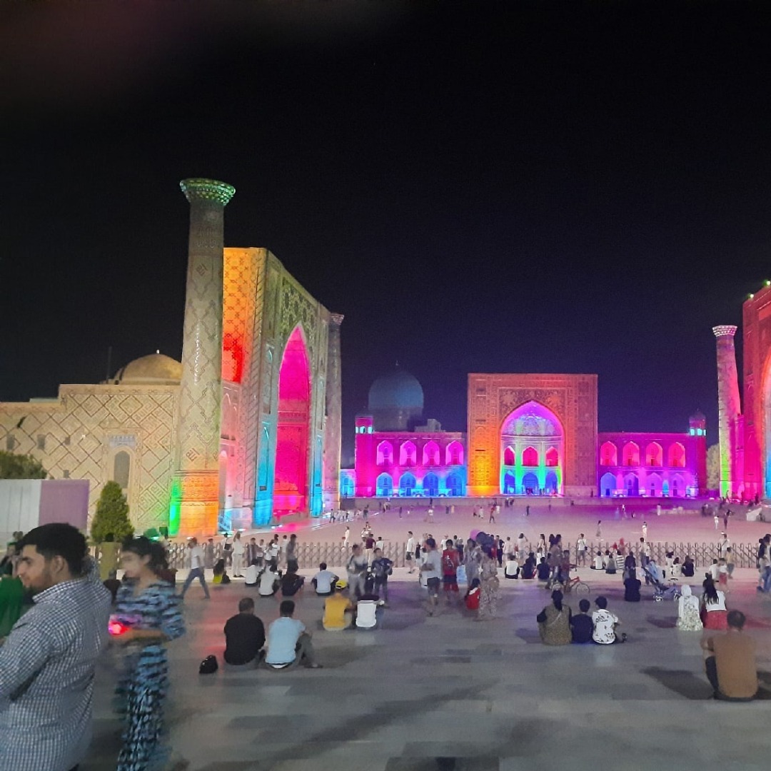 Также мы прогулялись по Самарканду - это один из древнейших городов в Средней Азии. Мы посмотрели такие великолепные сооружения, как обсерватория имени Мирзо Улугбека, Гур-Эмир – это мавзолей Тамерлана, площадь Регистан - визитную карточку Самарканда, мечеть Биби-ханым, некрополь Шахи-Зинда. На данный момент идет подготовка полным ходом к саммиту ШОС, который состоится осенью. Очень много реставрируется, город озеленяется. Несмотря на жаркую погоду, очень восхитила и зарядила энергия Самарканда.