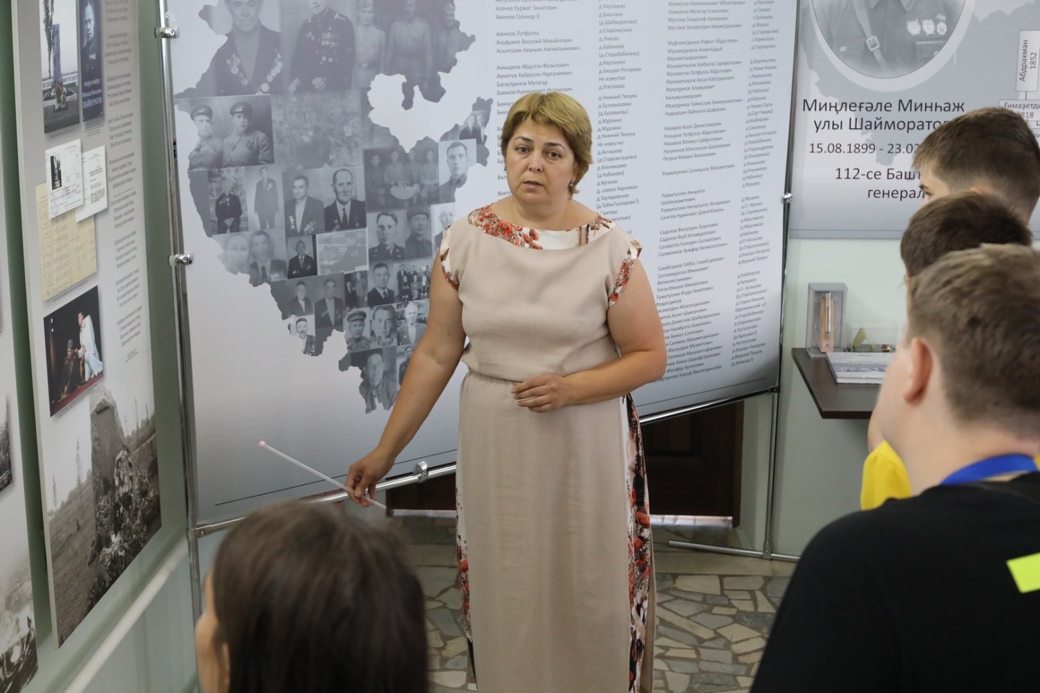 «Мы с ребятами приехали в деревню Шаймуратово, чтобы посетить выставочный зал имени генерала-майора Минигали Шаймуратова. Сегодня здесь побывали 39 детей из Донецкой народной республики, им по 14-16 лет, — рассказала «Башинформу» старший вожатый университетских профильных смен Алсу Сахаутдинова. — У нас было четыре смены и каждую смену мы приезжали сюда, возлагали цветы к памятнику и бюсту Шаймуратова, знакомили детей с нашим выдающимся земляком. Нам здесь показали 3D фильм. Детям особенно интересно было узнать, что герой погиб на территории нынешней Луганской народной республики».